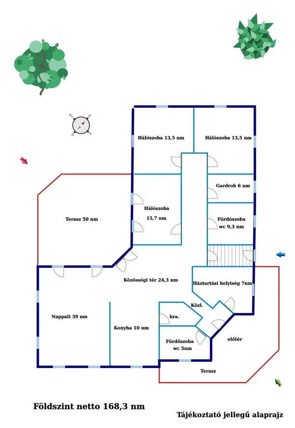- jelenlegi élettere a földszint, amely 160 nm-es