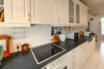 - az ablakos konyhája kamrával is ellátott, 2 fürdőszobája van, emellett ablakos gardrób és ablakos háztartási helyiség is kialakításra került
