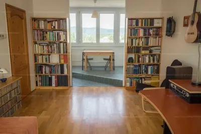 A lakás 2+1 félszobás csúsztatott zsalus paraméterű, jelenleg 2 szoba + étkezős kialakítással. Kelet–nyugati tájolású, átmenő elrendezésű, így JÓL SZELLŐZTETHETŐ és egész nap KÖRBE VILÁGOS, GYÖNYÖRŰ, hegyekre nyíló PANORÁMÁVAL. A lakás a 4. emeleten található; lift nincs, felette a padlástérben még egy ingatlan helyezkedik el.