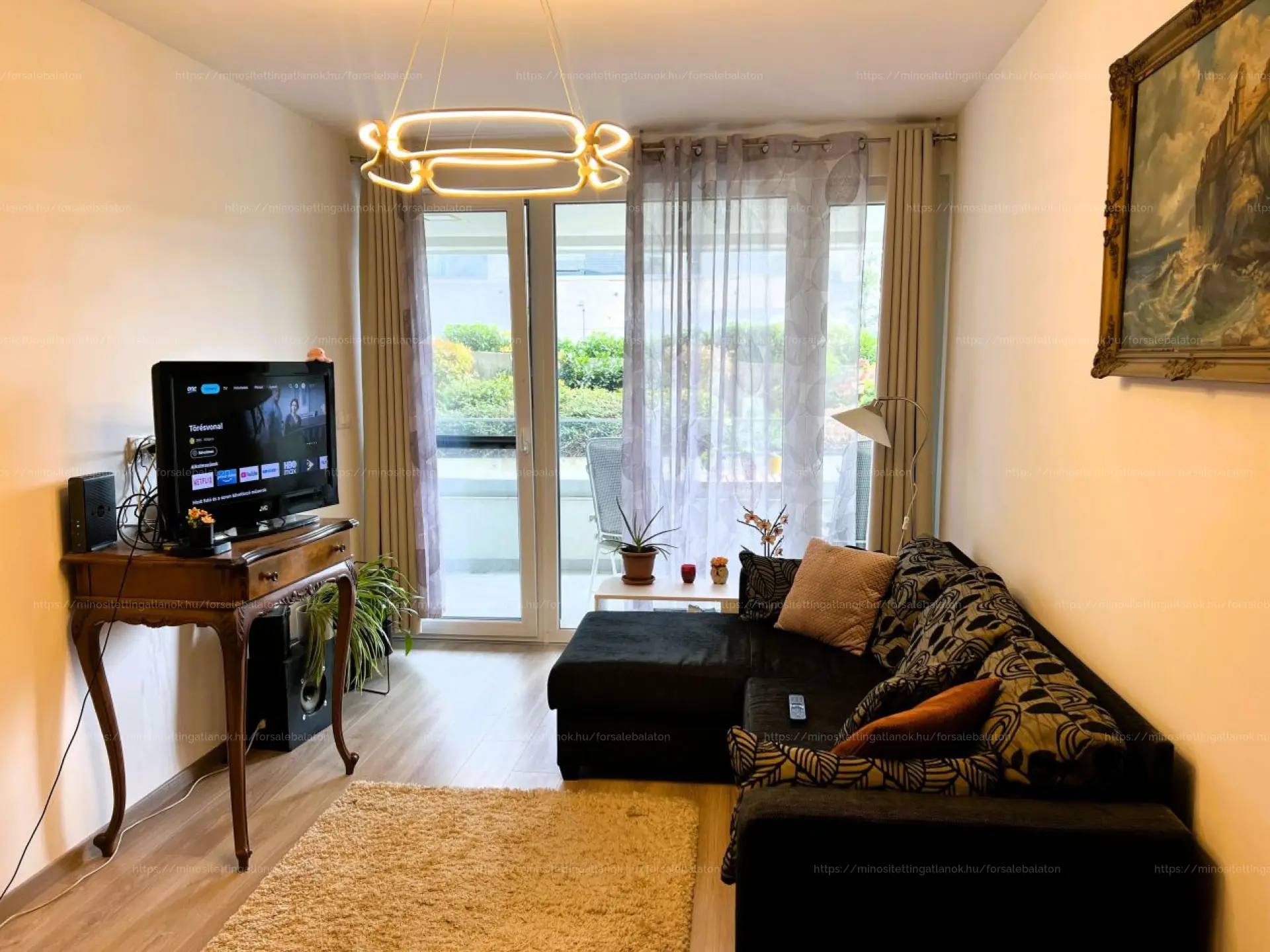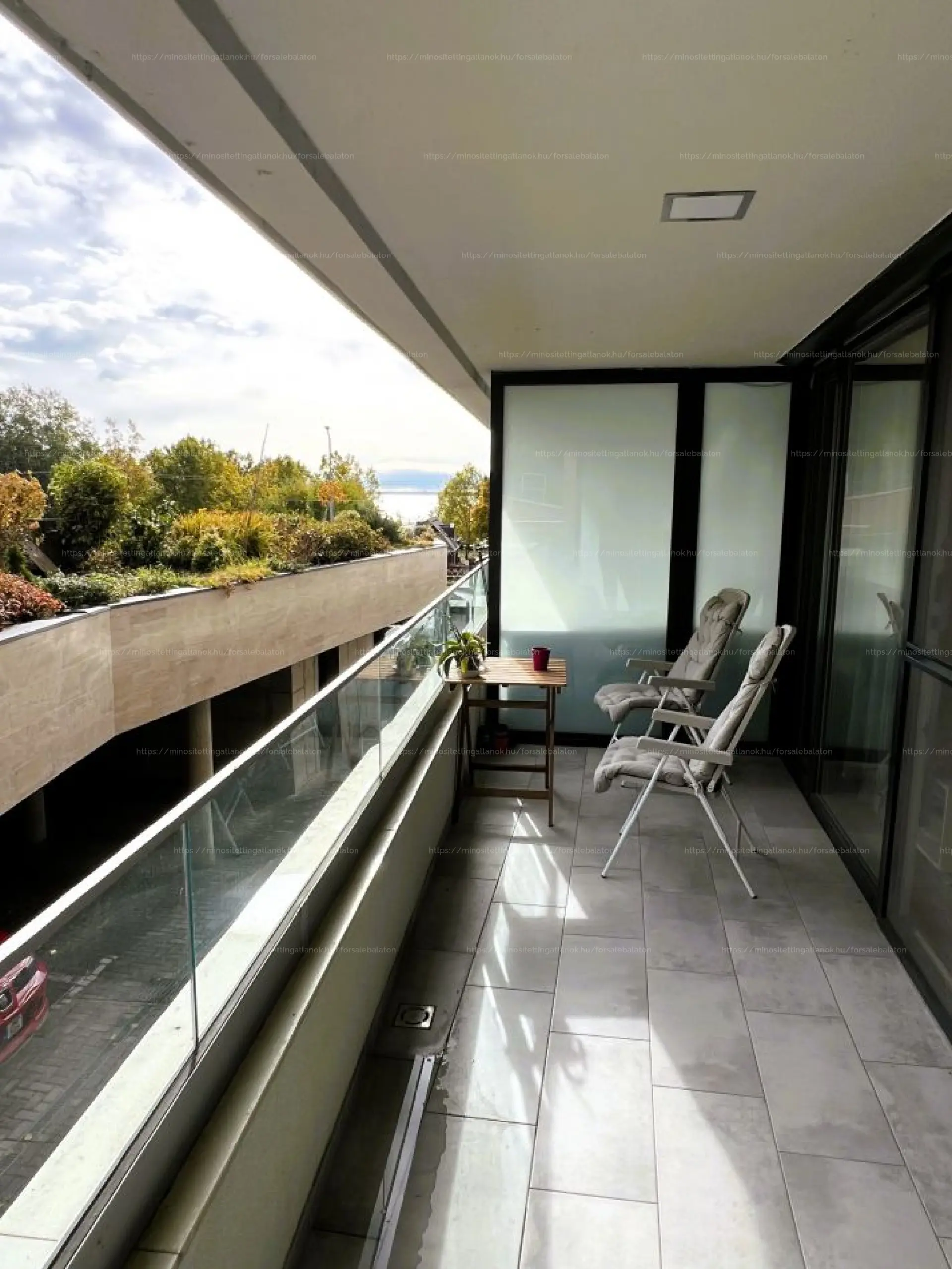 – 10 m²-es terasz Balaton-részpanorámával (nappaliból és hálóból is nyíló)