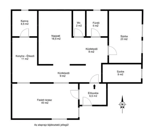 - Konyha-étkező, kamra, fürdőszoba, külön WC, közlekedő, előszoba