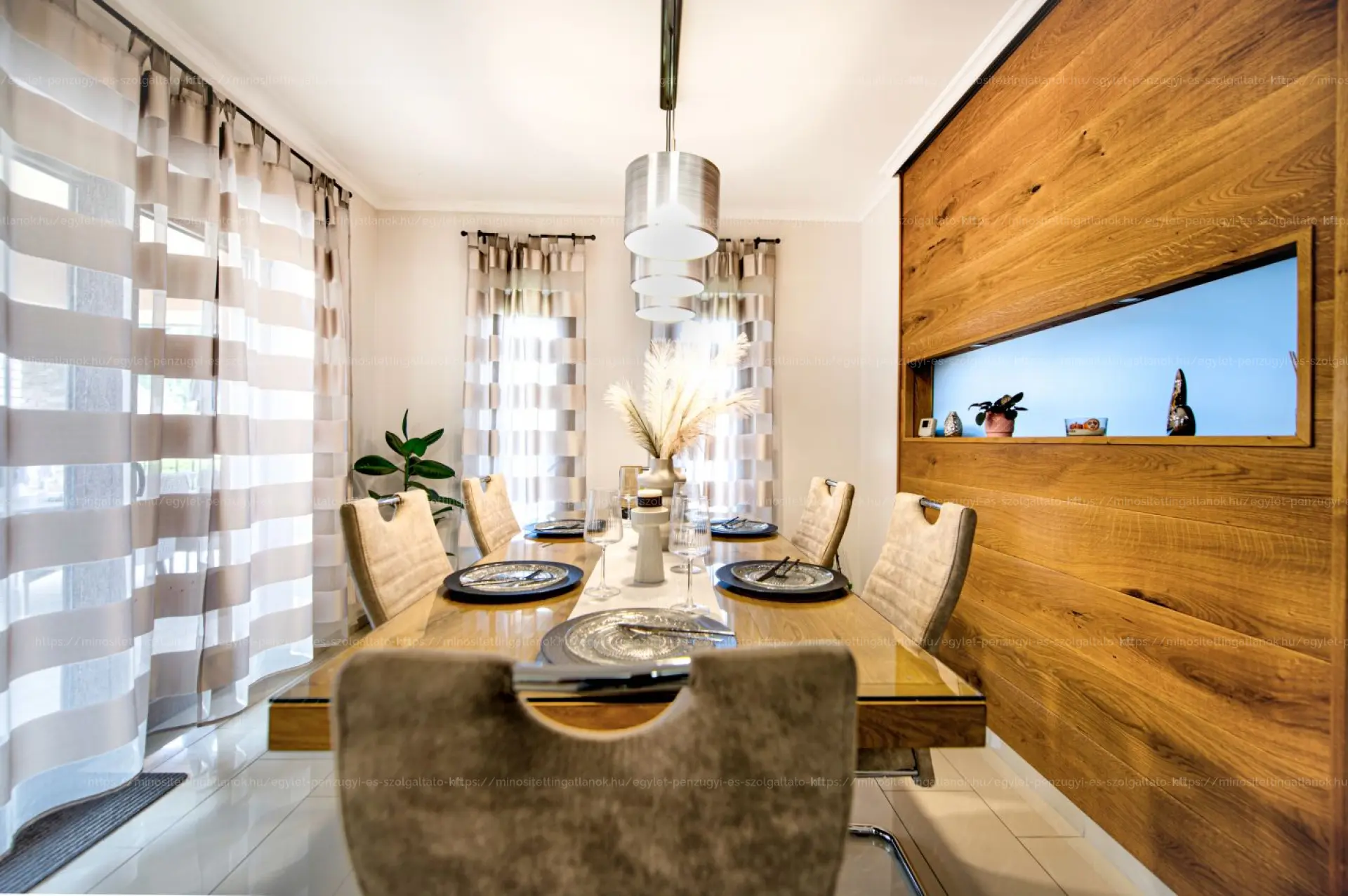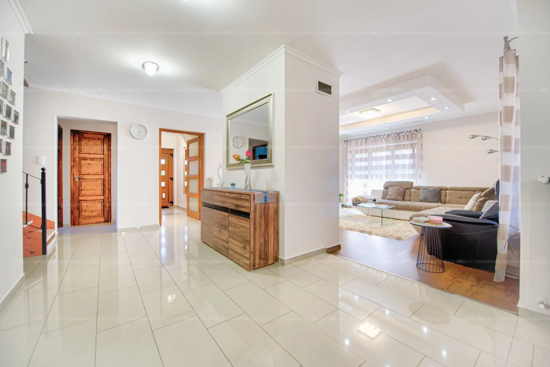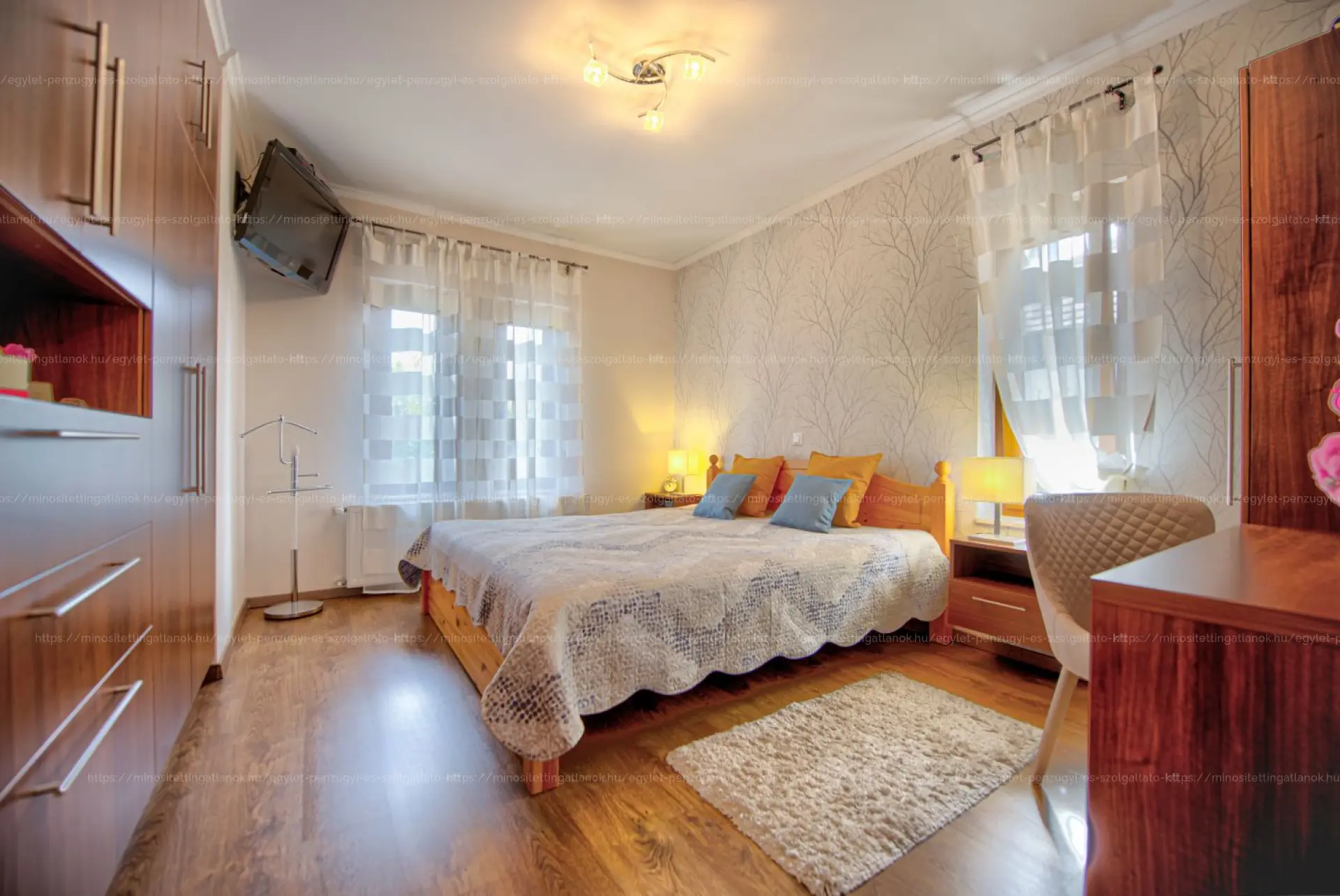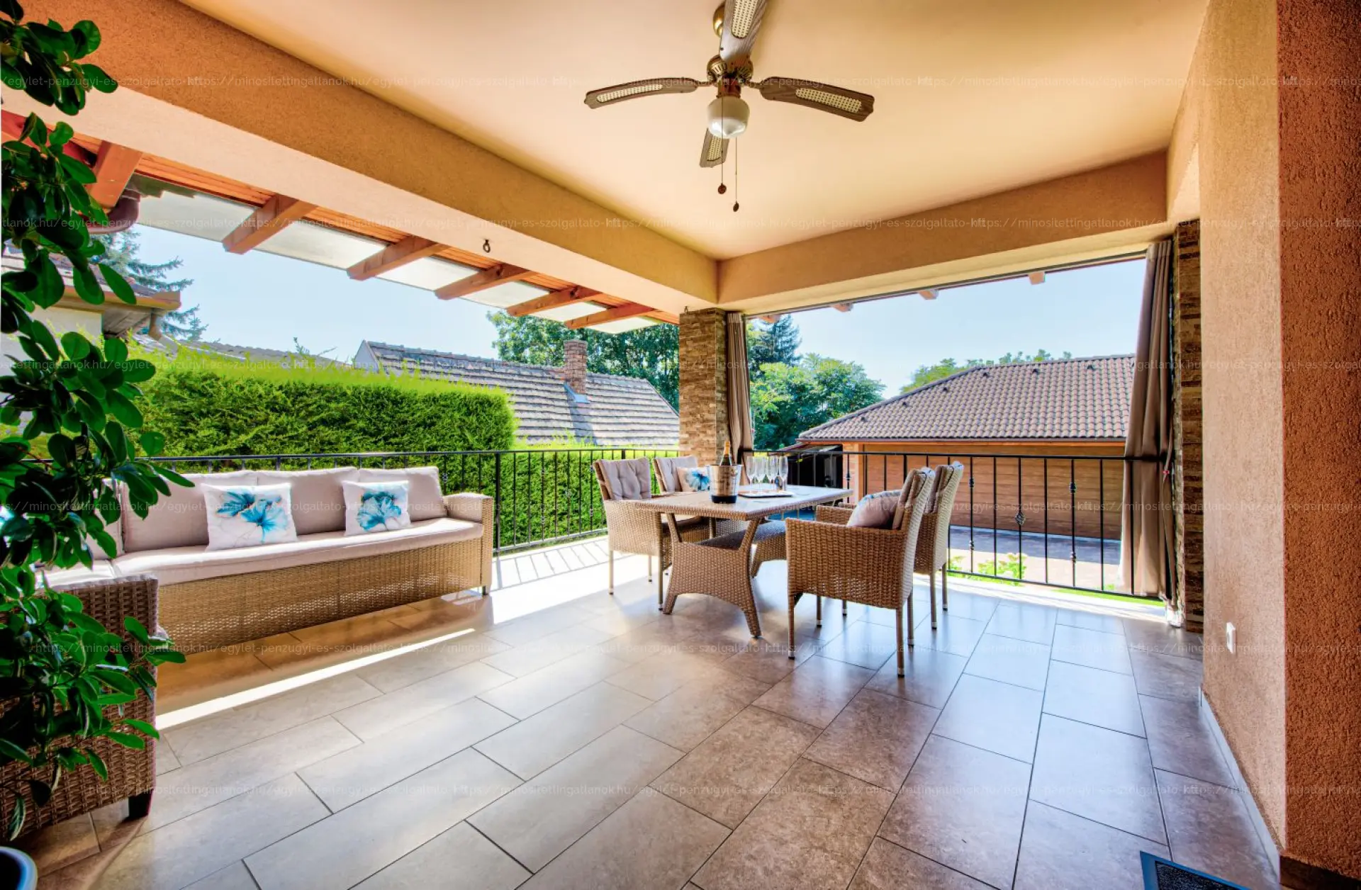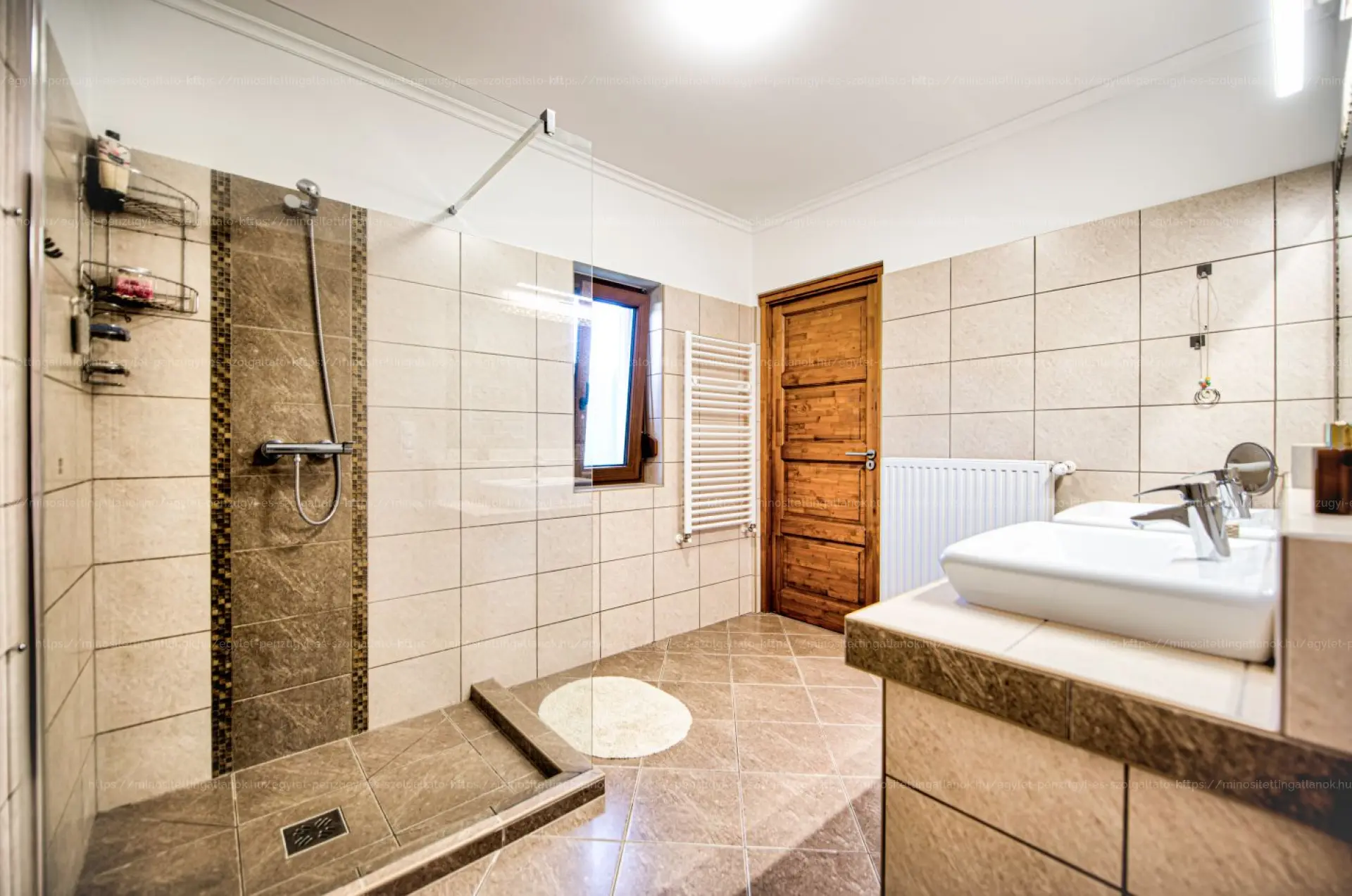 A Balaton déli partján, Balatonboglár csendes aszfaltozott utcájában, mediterrán stílusban 2017-ben épített gyönyörű, makulátlan 2 szintes családi ház igényes új tulajdonosát várja. A szépen rendezett környék adottságai kiválóak, az utcában szinte valamennyi ház 2010 után épült. A közelben minden megtalálható, ami a mindennapi életvitelhez szükséges (élelmiszer üzletek, hentesbolt, háztartási bolt, Tesco, iskola stb.). A Balaton és az M7 autópálya is mindössze 1,5 km távolságra érhető el. A számos extrával felvértezett 255m2 összterületű ingatlan kialakítása reprezentatív, minden részletében átgondolt, kifejezetten igényes kivitelezésű. A 795 m2 összközműves, parkosított, térkövezett, rendezett telken a lakóház mellett két autó kényelmes beállását biztosító, elektromos garázskapuval rendelkező garázs, egy tároló és egy kazánház található. A melléképület részben alápincézett, melyben kényelmes közösségi tér került kialakításra a szükséges funkciók biztosítása mellett (különálló WC, önálló kandalló, mosogatós konyhapult). Az intim kertben lett felépítve egy fedett grillterasz, kemencével, grillsütővel, bográcstartóval. A kerti növények locsolása automata öntözőrendszerrel biztosított. A kapu elektromos motorral működik, az ingatlan riasztórendszerrel és kamerarendszerrel is felszerelt. A háztartási víz megfelelő keménységét központi vízlágyító biztosítja. A lakóház elosztása: a földszinten a nappali és étkező egy légtérben, konyha, fürdőszoba, háztartási helyiség, WC, hálószoba, előtér és egy hatalmas fedett terasz. Az emeleten: két hálószoba, fürdőszoba WC-vel, valamint egy kisebb nappali. A szinteket elegáns portugál mészkővel burkolt lépcsőház köti össze. A ház fűtését a típusában legmodernebb ún. faelgázosító kazán látja el, de alternatív megoldásnak gázkazán kiépítése is folyamatban van. A hőleadás radiátorokkal biztosított. További fűtési alternatívát jelenthetnek a nappaliban kialakított igényes kandalló, továbbá a ház hűtését biztosító split klíma berendezések is. A ház rezsikvóta alatti hőenergia felhasználását többek között a magas minőségű több cellás nyílászárók, valamint a 10 cm grafitos homlokzati szigetelés optimalizálja. Az ingatlan állandó lakhatásra és nyaralónak egyaránt ideális választás. Mindent összevetve, ez az igazán „beleszeretős”, nívós ház igazi otthont nyújt minden korosztálynak, akinek fontos a csend, a rendezett, nyugodt, biztonságos környezet, és fontosak a jószomszédi kapcsolatok. A hirdetéshez csatolt fotók, 3D séta, illetve videó megtekintését követően a felmerülő kérdések kapcsán felkészülten várom hívását a hét minden napján.