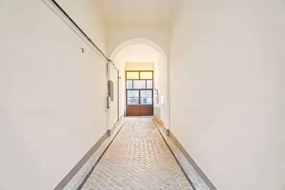 The apartment is located in a quiet, well-kept courtyard environment inside a traditional walkway-style building.