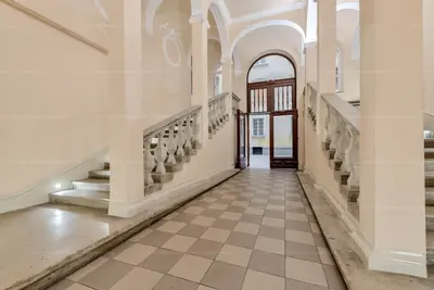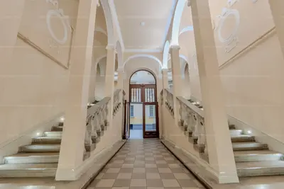 Szépen karbantartott épület, impozáns bejárat és stílusos közös helyiségekkel.