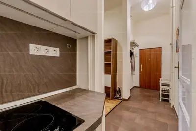 Praktikus konyhafülke, beépített zuhanyzós fürdő, sokoldalúan használható hall (mint nappali/étkező).