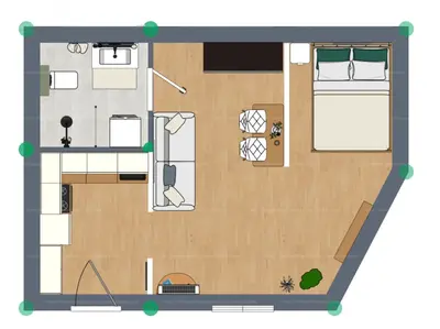 A lakás alapterülete 31 m² (tulajdoni lap szerint is), egy hálófülke került leválasztásra így másfél szobás jellegű és jól berendezhető lett.
