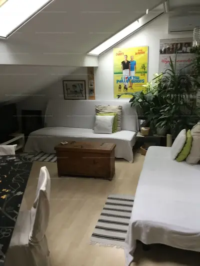A ház maga távfűtéses, azonban ez a lakás levált és egyedi gáz fűtéses. Netto 60 nm(ez szerepel a tulajdoni lapon is), a valóság azonban 73 nm tekintettel a tetőtéri 1.9 m alatti területekre. Az épületben a tetőszerkezet nemrég lett kicserélve. A ház anyagilag jól áll, a belső udvarban vannak gépkocsi beállók, de ezek várólistásak.