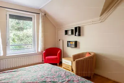 Eladó egy különleges adottságokkal rendelkező, 164 m²-es ikerházfél, hozzá tartozó, közel 600 m²-es, kizárólagos használatú, gyönyörű ősfás kerttel a II. kerület egyik legkeresettebb zöldövezeti részén. 🌳