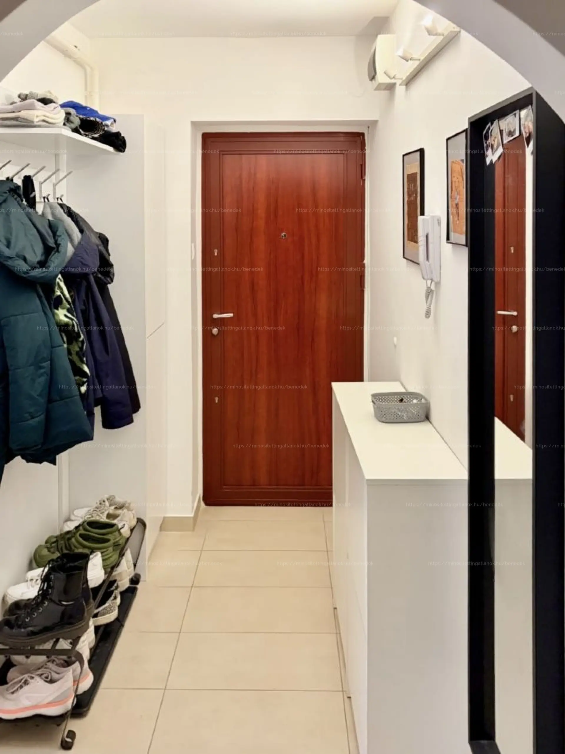 A lakás praktikus, jól bútorozható elosztású, minden helyisége külön nyílik, így ideális akár családnak, akár kiadásra.