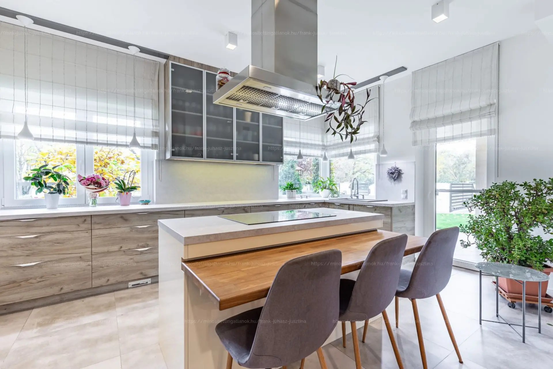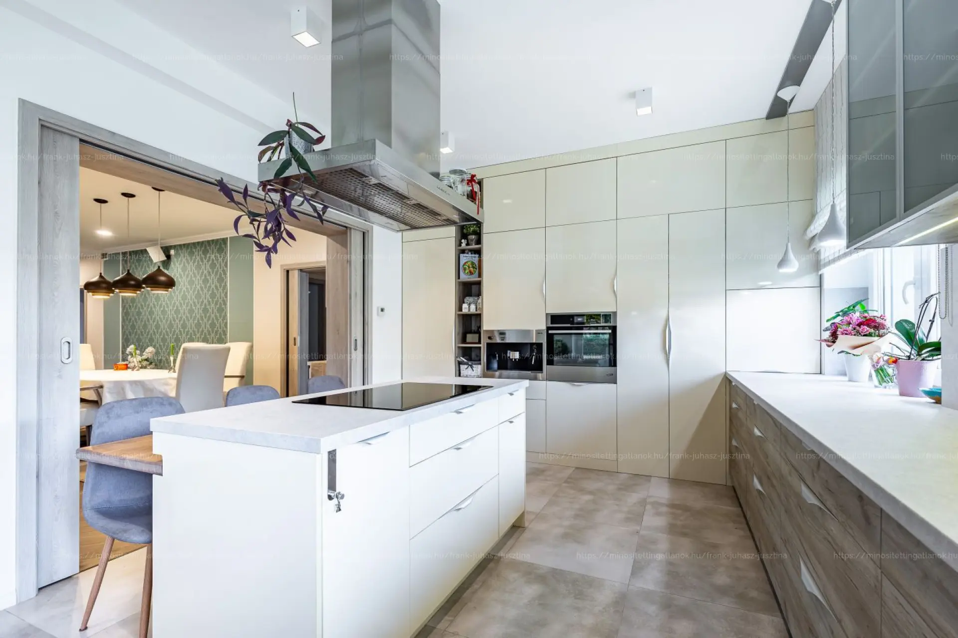 •Hatalmas, világos konyha rejtett kamrával, beépített Miele kávéfőzővel, Lux víztisztítóval