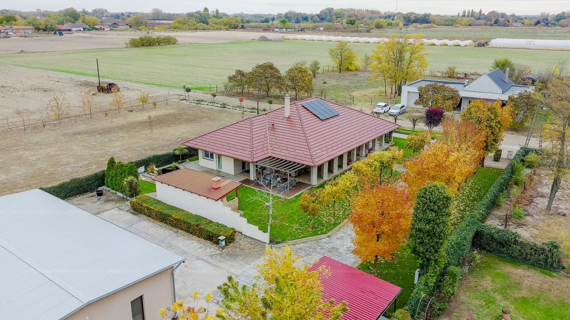 •2 állásos fedett beálló, 30 m² terasz, minden szobából kertkapcsolat