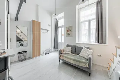 • 20 m²-es garzonlakás: galériás szoba, fürdőszobával, saját konyhával.