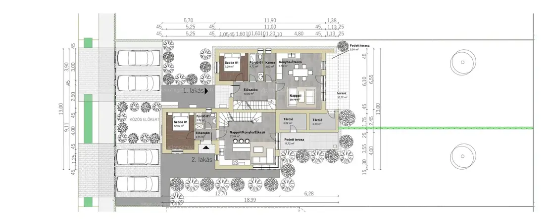 Lakás 1. – 122,13 m² saját kert ~ 400 m²