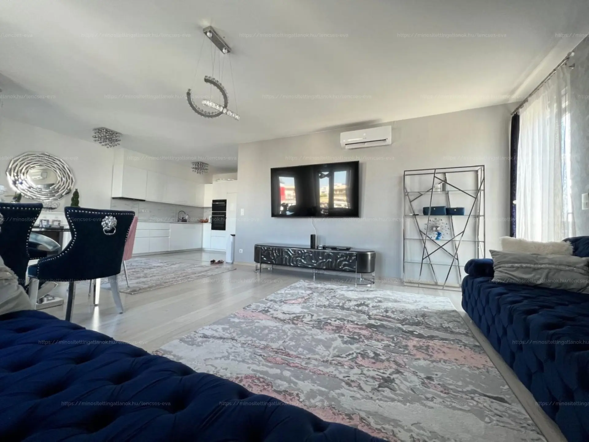 Luxury apartment for sale on the Marina Life waterfront. 7th floor with partial panoramic views of the Danube and the Buda Hills. Access from the stairwell; building with two elevators. 122 sqm, 4 rooms with open-plan kitchen, two bathrooms, separate WC. 3 balconies (total 24 sqm). Individually metered central heating, air conditioning with heating and cooling, decorative fireplace. Southwest-facing. Common charges: HUF 40,000/month. The condominium was built in 2022. Walk-in closet. Parking space(s) in the underground garage available for purchase on request at HUF 8 million per car; EV charging available in the garage. Corner apartment, unencumbered.