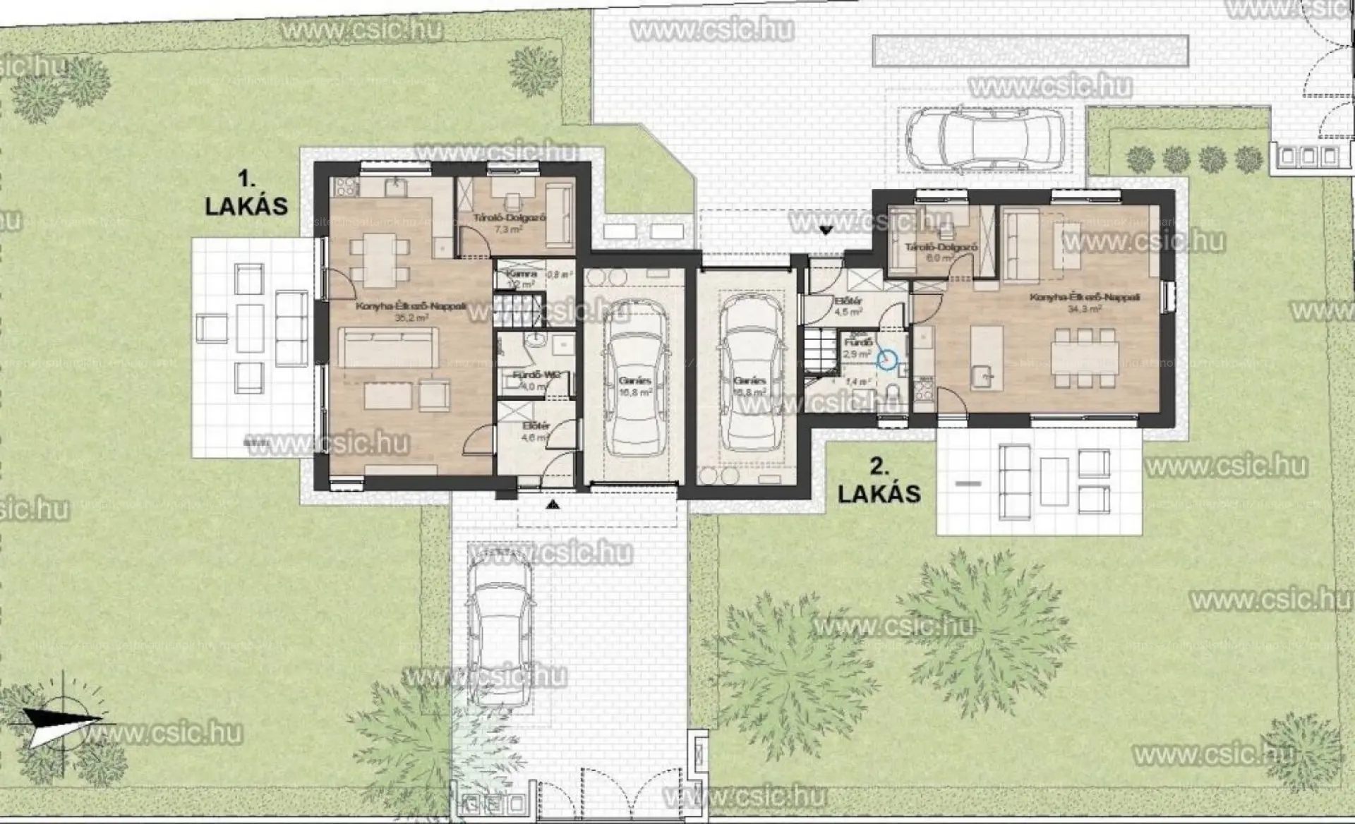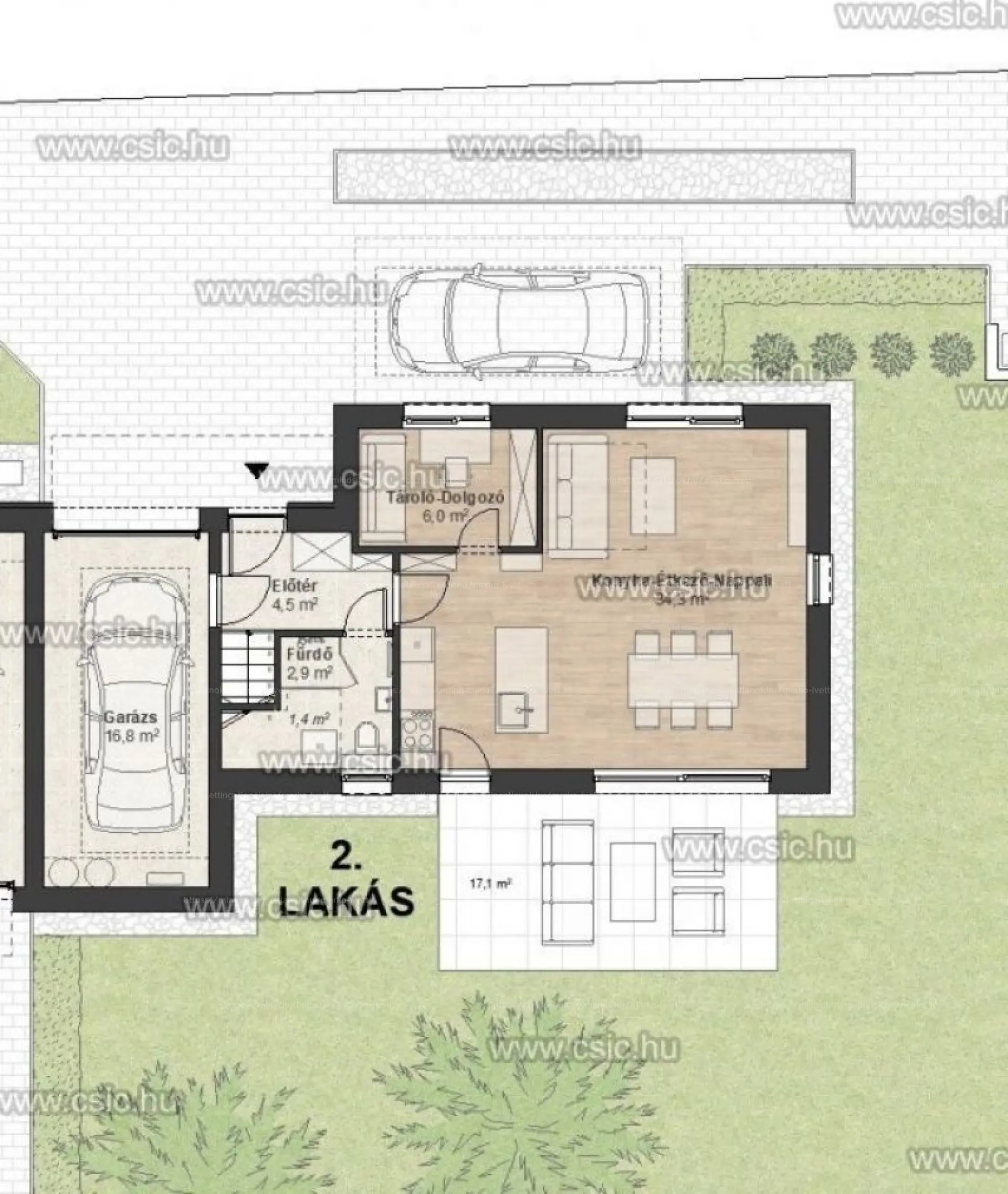- 1 autónak GARÁZS (17 nm) és 1 autónak kialakított FELSZÍNI PARKOLÓ az árban,