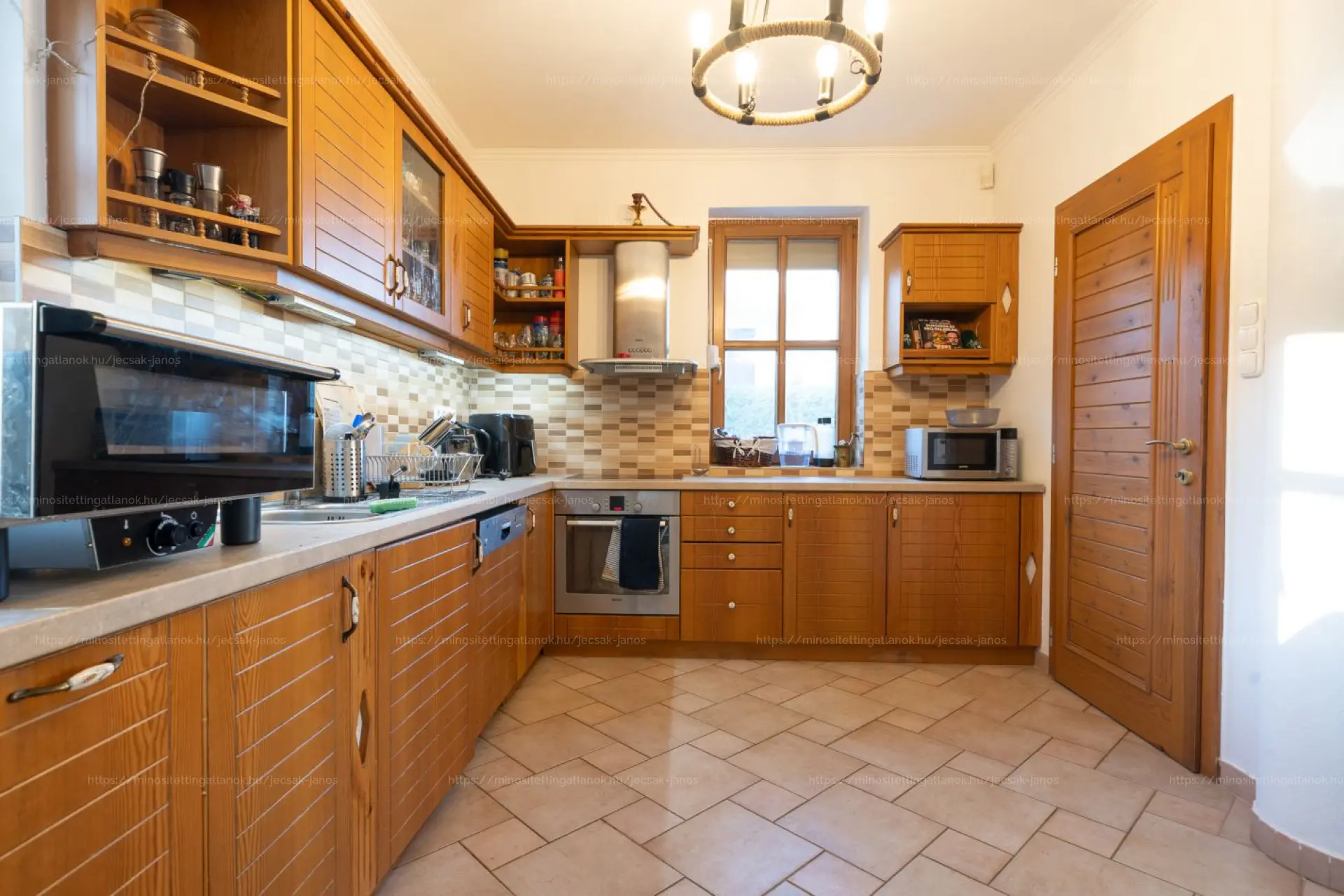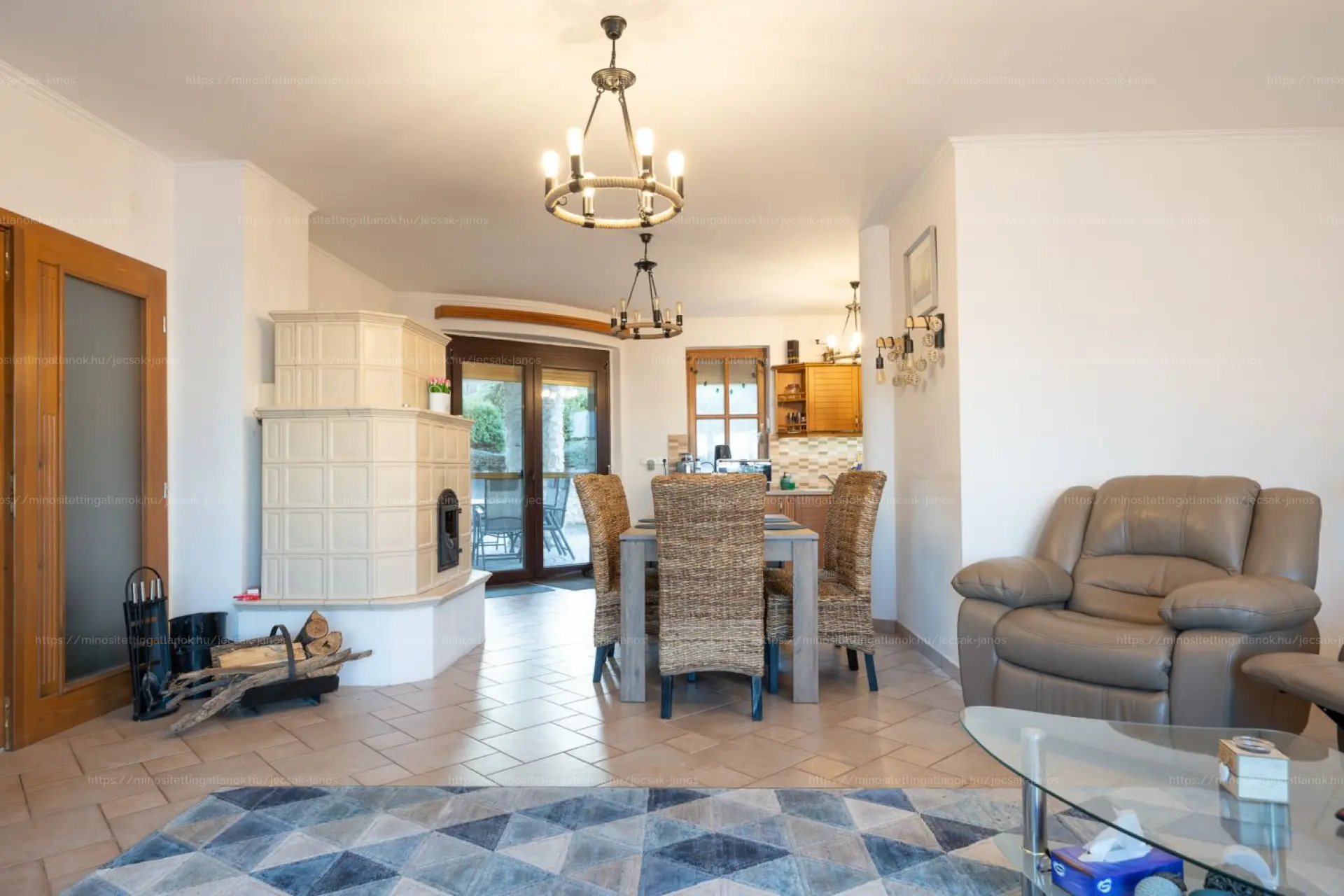 - egy légtérben kialakított amerikai konyhás nappali-étkező, modern cserépkályhával, közvetlen kijárat a fedett teraszra