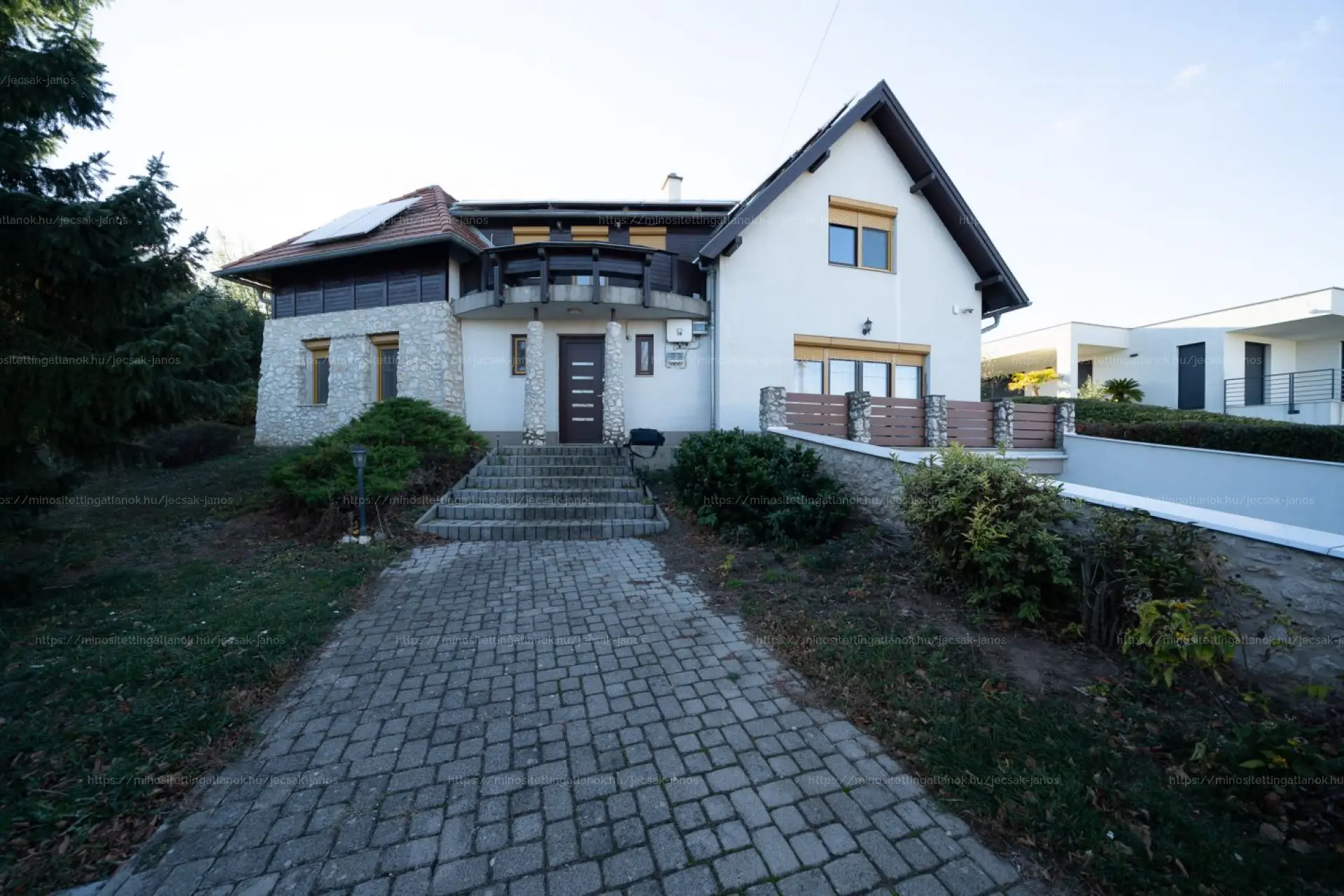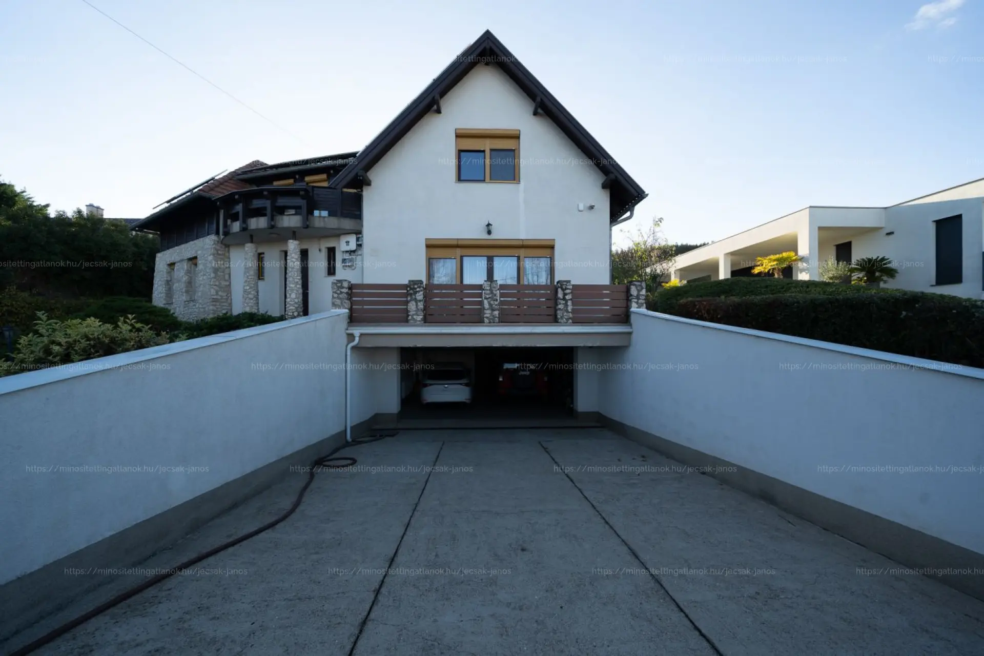 Velence Bence-hegy oldalában, egyedi tervezésű, 240 m²-es, háromszintes családi ház, panorámával és 1500 m²-es, teraszos, parkosított kerttel. Az Északi strand csupán 5 perc autóval, mégis távol a város zajától – a környék újszerű családi házakból áll, csendes, barátságos utcában.