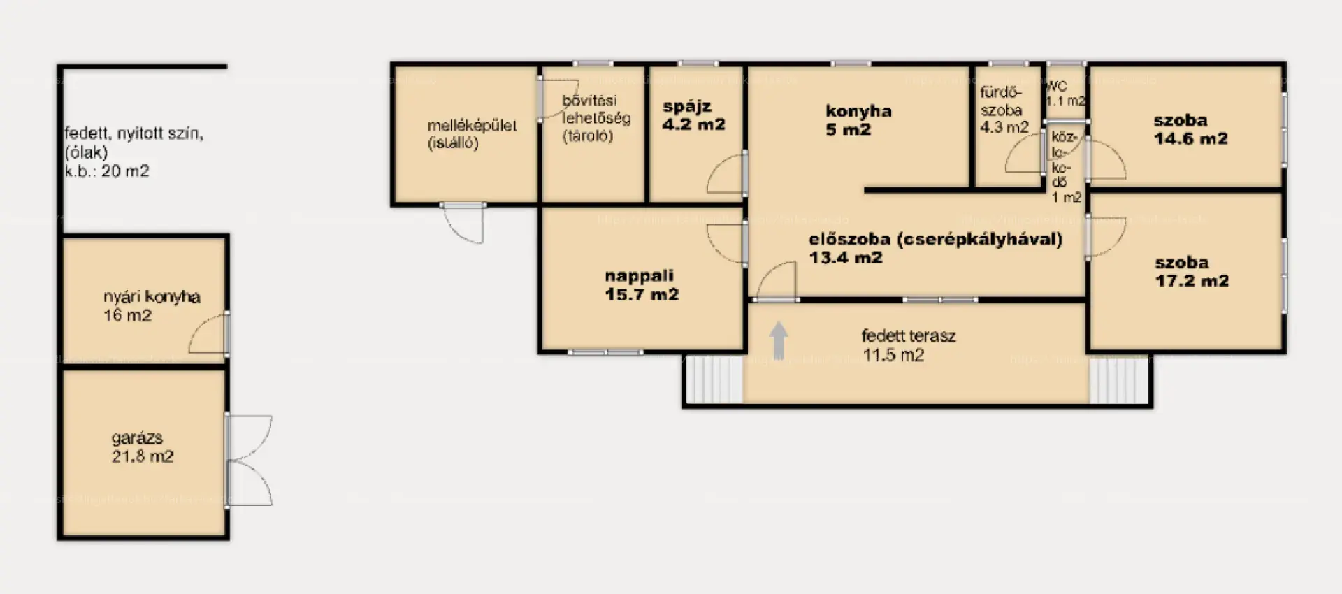 A beton alapra, tégla falazattal épült háznak a bővítésére van lehetőség, fűtését gázkonvektorok és egy nagy méretű cserépkályha biztosítja. A nyílászárókat 2018-ban műanyagra cserélték. A melléképületben garázs, nyári konyha és tároló található. Rendezett jogi hátterű, azonnal birtokba vehető, hitelezhető ingatlan. (Falusi "CSOK" igénylése is lehetséges.)