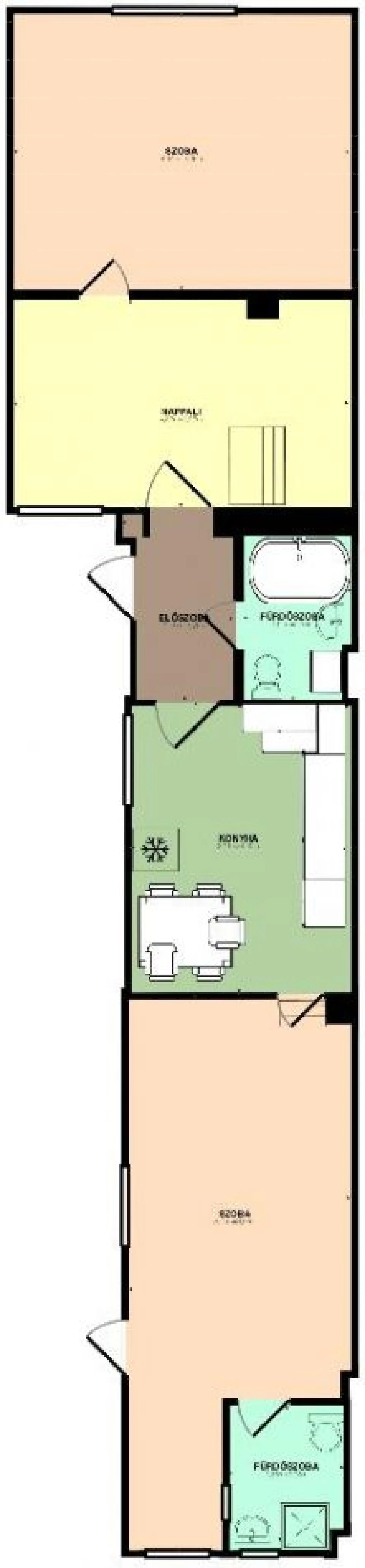Földszinten nappali, 2 háló, konyha, előszoba, 2 fürdő 🛁, emeleten nappali, 2 háló és egy fürdőre átalakítható helyiség – világos, barátságos terek, minden szuper praktikus ☀️✨. A konyha gépesített, bútorok benne, szóval költözéskor nem kell semmit vinni 🍳🍽️.