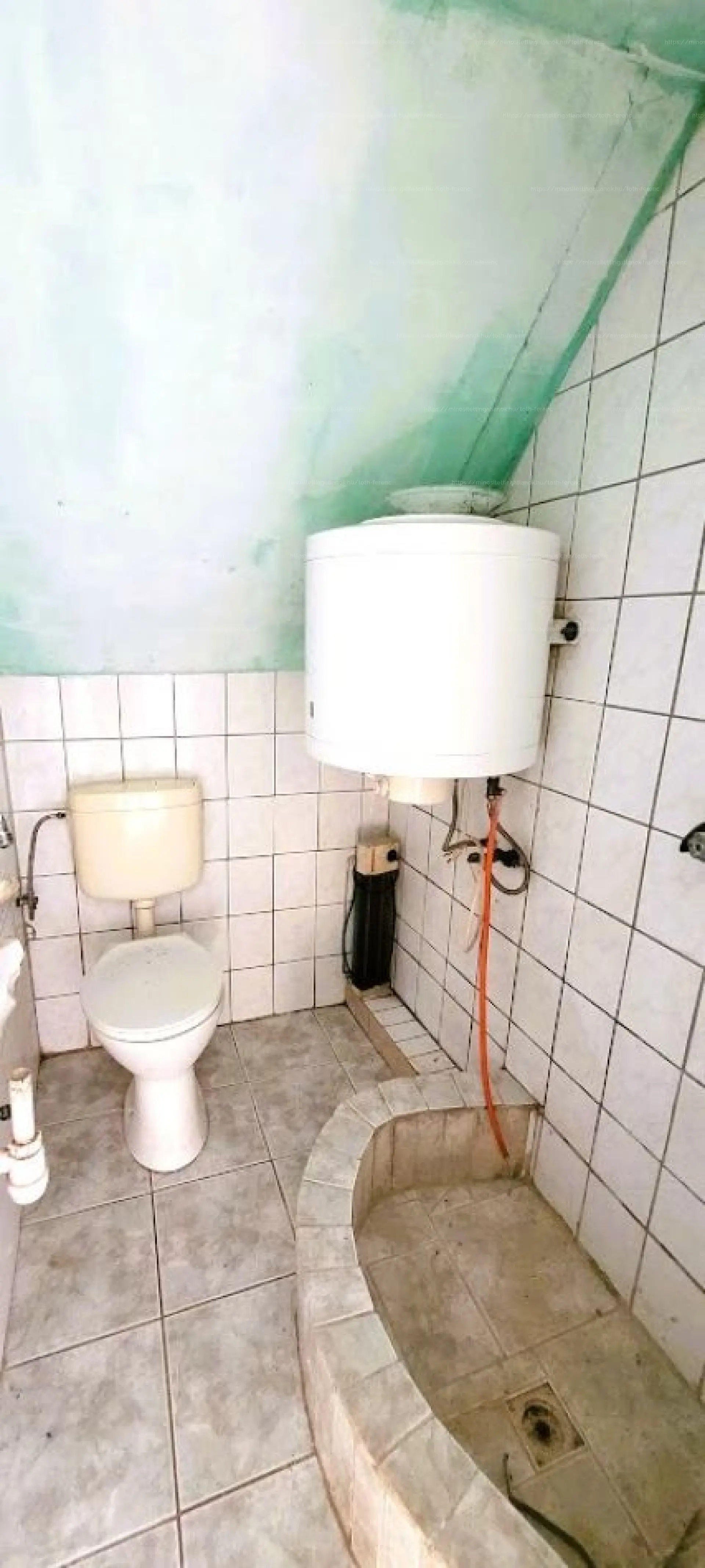 Közművek: 1x16A villany, VEZETÉKES VÍZ, szennyvíz 10 m3-es DERÍTŐBEN, fűtés KANDALLÓVAL, melegvíz VILLANYBOJLERREL. Az udvarban ÁSOTT KÚT segíti a kert öntözését. A 727 m2-es sík telek PARKOSÍTÁST IGÉNYEL, de könnyen rendben tartható.