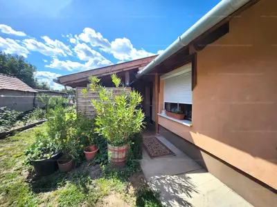 Pest vármegyében, Örkényen, felújított, családi ház eladó. Az 1677 m2-es telken található a 73 m2-es lakóház, alapja beton, falazata tégla és vályog, helyiség elosztása: előtér, amerikai konyhás nappali, 2 szoba, közlekedő, fürdőszoba mellékhelyiség, kamra és terasz. Az ingatlan szerkezetileg jó állapotú, felújított, fűtés cserépkályhával és hűtő-fűtő klímával megoldott, meleg víz ellátást villanybojler biztosítja. Víz, csatorna, villany a lakóházban, gázcsonk a telken belül található. Az ingatlan használati megosztással rendelkezik, a lakóházhoz külön udvarrész tartozik, a telken található még egy 45 m2-es lakrész külön udvarrésszel, a kettő egyben is megvásárolható.