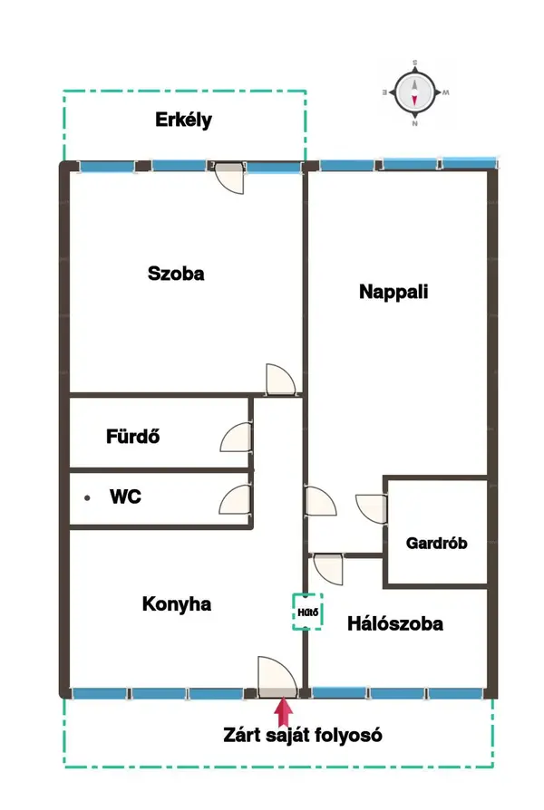 ✔️ Szinte saját folyosó + 2 erkély