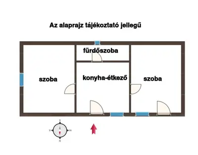 Innen két NAGYMÉRETŰ szoba nyílik előre és hátra, valamint egy FÜRDŐSZOBA.