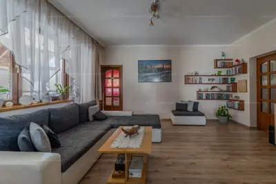 We offer for sale a 278 m² family house built on two levels, situated on a well-maintained 1586 m² plot. The property is ideal for large families or multi-generational living, but it could also serve perfectly as a guesthouse or small pension.