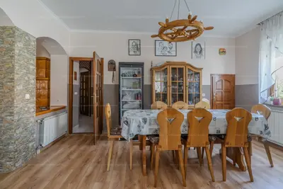 Zum Verkauf steht ein 278 m² großes Familienhaus auf zwei Ebenen, das sich auf einem gepflegten 1586 m² großen Grundstück befindet. Die Immobilie ist ideal für Großfamilien oder Mehrgenerationenwohnen, eignet sich aber auch perfekt als Gästehaus oder kleine Pension.