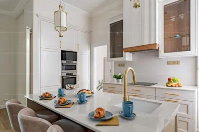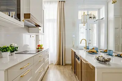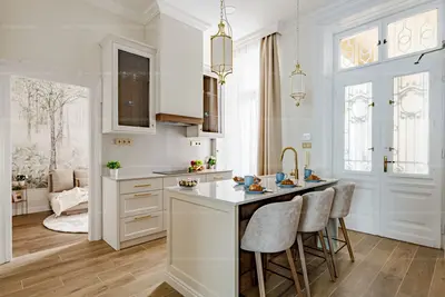 A megvalósult álom szerint kialakításra került egy előszoba, méretre gyártott mennyezetig érő szekrényekkel, konyha, nagyméretű konyhaszigettel melyek konyhai hátfalára is felfutó kő burkolatai, tölgyfa betétei, 10 éves garanciával rendelkező minőségi konyha gépei, már belépéskor a magas minőségről tanúskodnak.