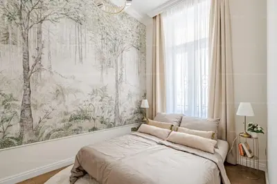A konyha melletti kisebb hálószobában helyet kapott egy körbe járható nagyobb méretű francia ágy éjjeli szekrényekkel, iróasztallal, székkel, és az egész lakásban megjelenő hullámos frontfelületű ruhás szekrénnyel.