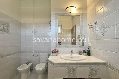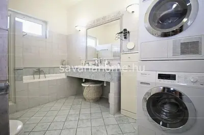 Az 1-es lakrész 118nm alapterületű, 3 hálószoba, 32nm-es nappali, konyha, kamra, két fürdőszoba, plusz egy Wc helyiségekből áll. Sok- sok beépített szerkény segíti a tárolást, melyek a vételárban kompletten beleszámítanak. A nappaliban található egy csodás cserépkályha, mely a közelmúltban lett újrarakva, így azzal mostanában teendő nincsen. Az ingatlan komplex fűtését gázkazán biztosítja, padló és falfűtéssel, de ebben a lakrészben két klíma is található, mely télen fűt, nyáron pedig a kellemes hűvös időt biztosítja. A ház rezsije nagyon kedvező, havi 10 ezer F-tos gázszámával kifűthető a két lakrész. A villanyszámlát, a tetőn található 10kW-os napelem rendszer teszi kedvezővé, de a melegvíz ellátáshoz is hozzájárul a plusz napkollektor.