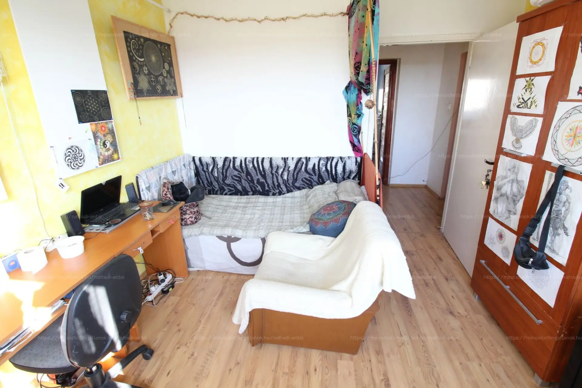 A belső tereket igazán jól kihasználható fedett erkély egészíti ki. A 4. emeleten, záró szinten helyezkedik el a 63 m2-es panel lakás. Fűtését távhő, biztosítja.