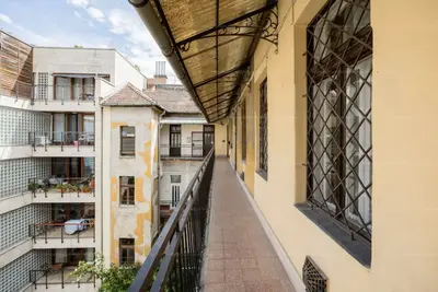 Az épület körfolyosós kialakításának köszönhetően az ingatlan rendkívül csendes: minden ablaka a belső udvarra néz, így a belvárosi elhelyezkedés ellenére nyugodt, zavartalan otthont kínál.