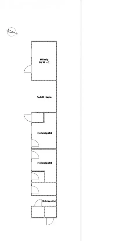 Az ingatlan folytatásaként egy 57 m²-es melléképület áll rendelkezésre, több helyiséggel, műhellyel, tárolókkal.