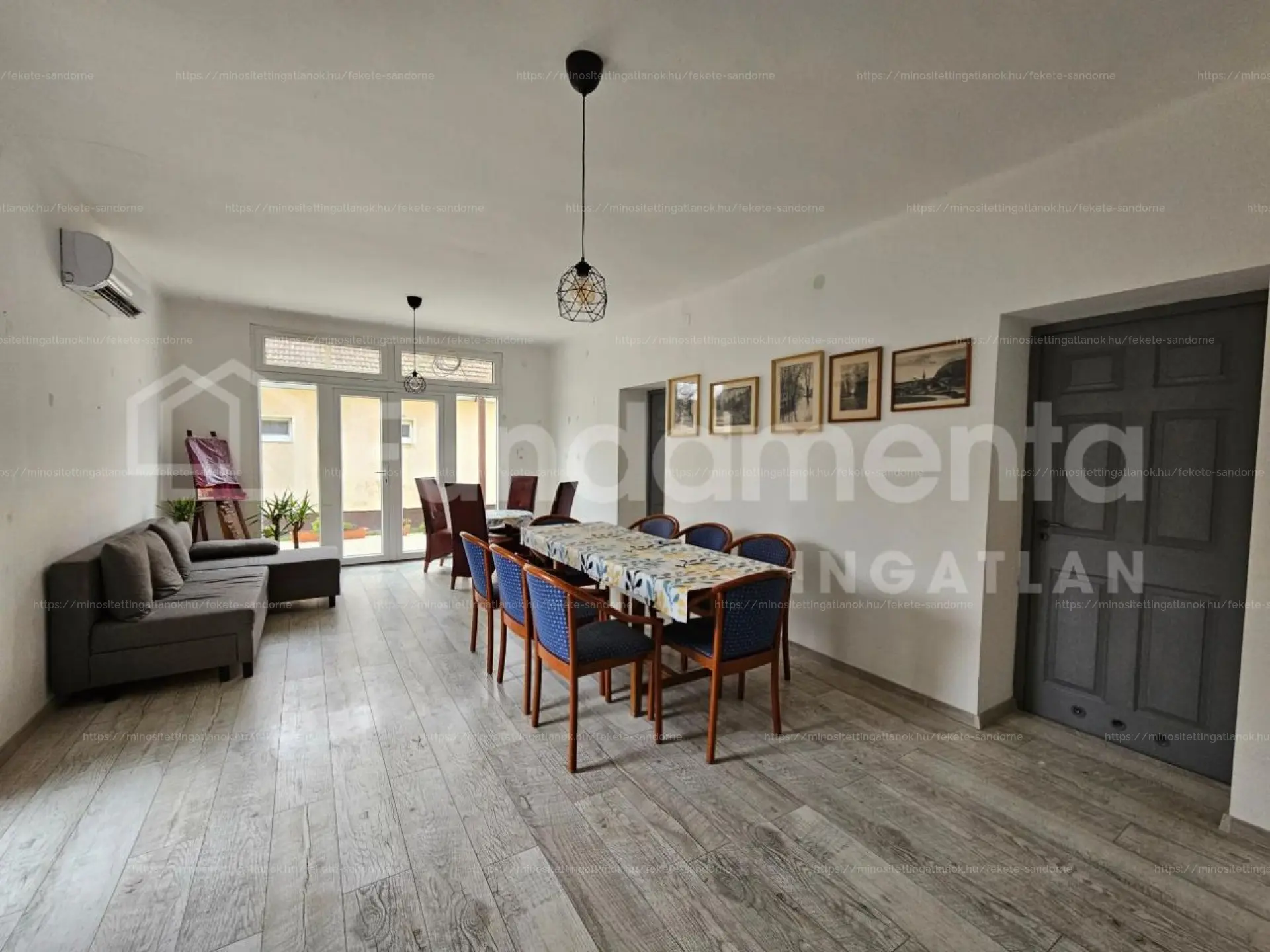 A földszinten egy tágas, teraszkapcsolatos nappali–étkező–konyha, 2 külön nyíló szoba, valamint fürdőszoba WC-vel, és mosókonyha találhatók. Az emelet önálló lakrészként funkcionál, 2 egész és 1 félszobával, saját étkezős konyhával, kamrával és két vizesblokkal, ami több generáció, több bérlő vagy vendég egyidejű elhelyezését is lehetővé teszi. A fűtés az emeleten konvektorokkal, míg a földszinten klímákkal megoldott.