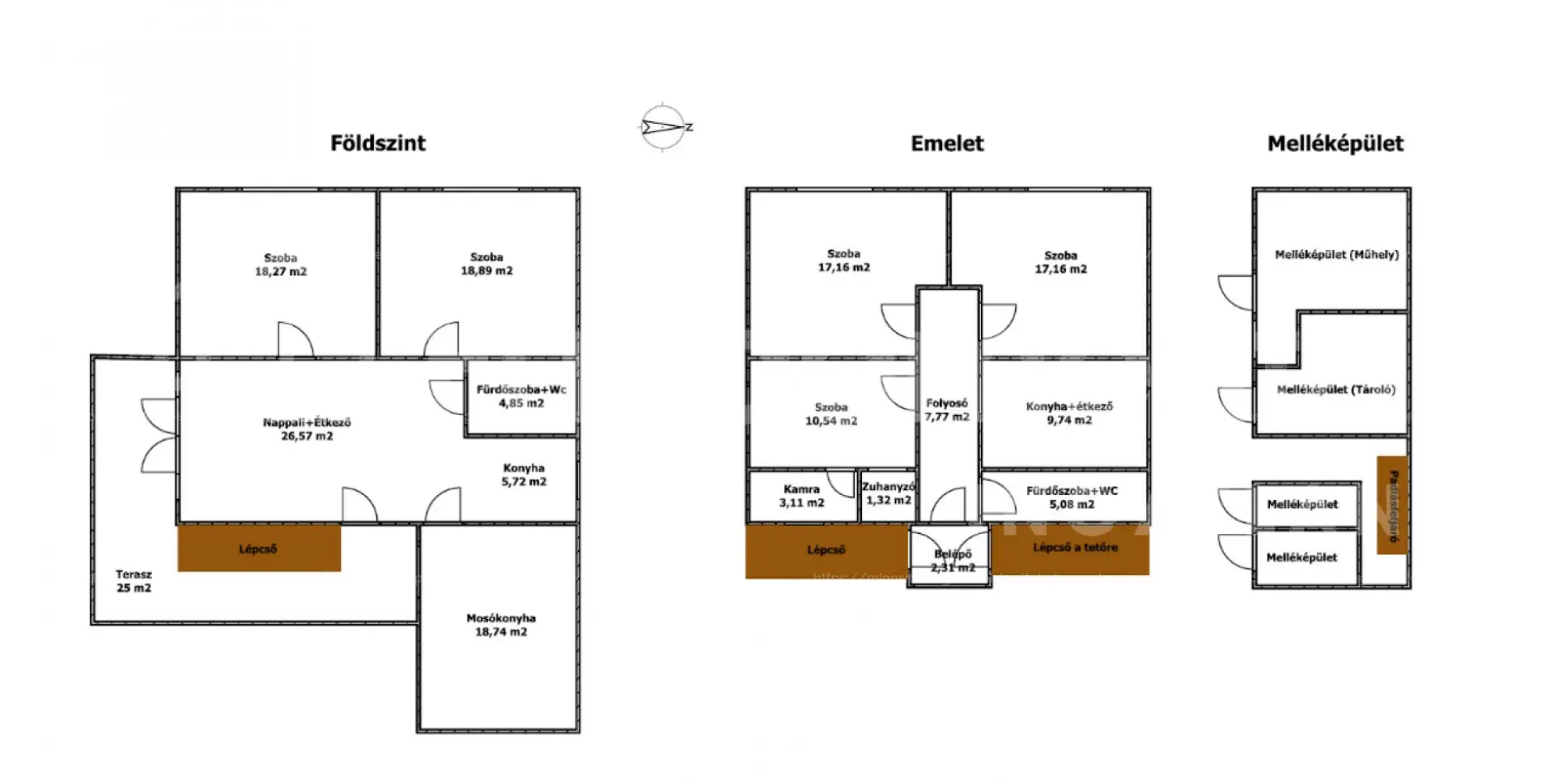 Az udvaron található 35 m²-es melléképület, valamint két zárható garázs tovább növeli a hasznosíthatóságot. A kert gyümölcsfákkal beültetett. Az infrastruktúra kiváló: iskola, óvoda, üzletek, hivatalok, fitness terem könnyen elérhetők.