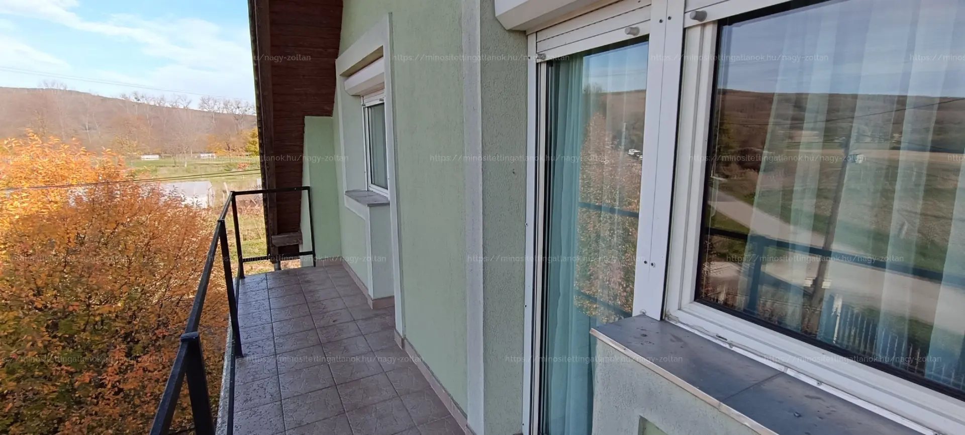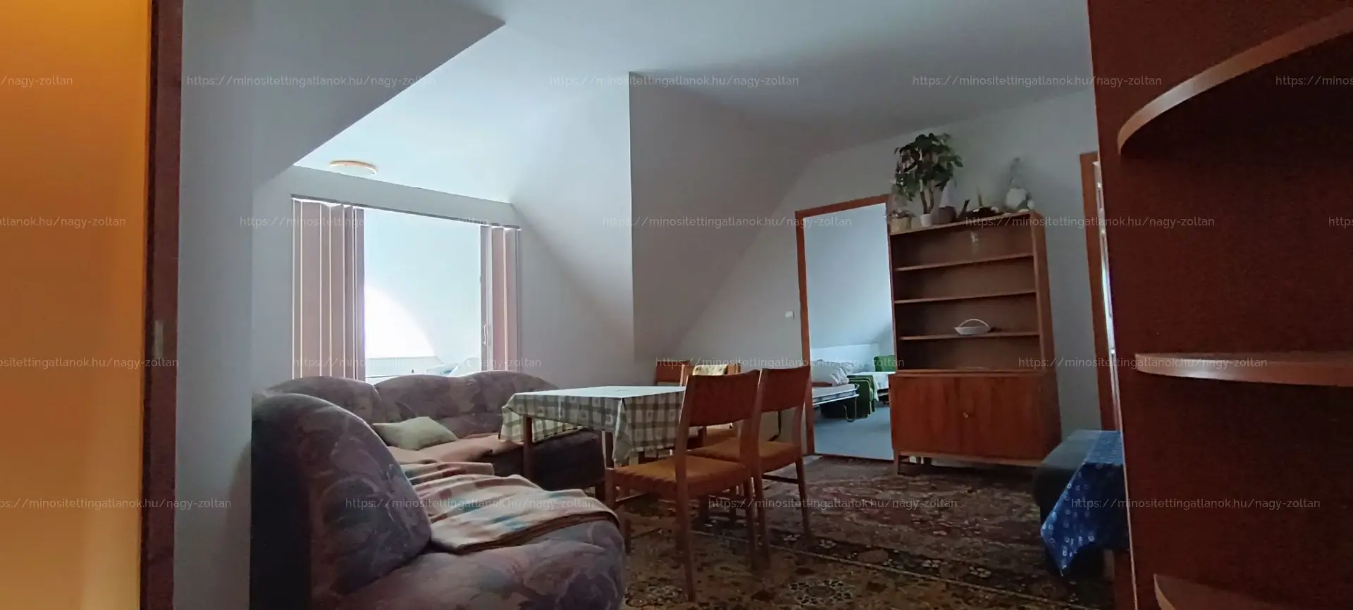 A felső szint jelenleg apartmanként funkcionál; a belső lépcső mellett igény esetén külső feljáró is kialakítható.