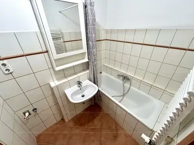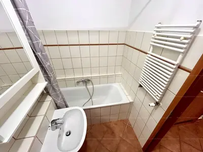 Upon entering the property, you'll find a small hallway. To the right, there's a separate toilet and a bathroom with a shower. Further on, directly opposite, is the bedroom, and the apartment also includes a living room with an American-style kitchen. Both the living room and the bedroom provide access to the large balcony, where you can enjoy the tranquility, as the street is quiet and the balcony overlooks an inner garden.