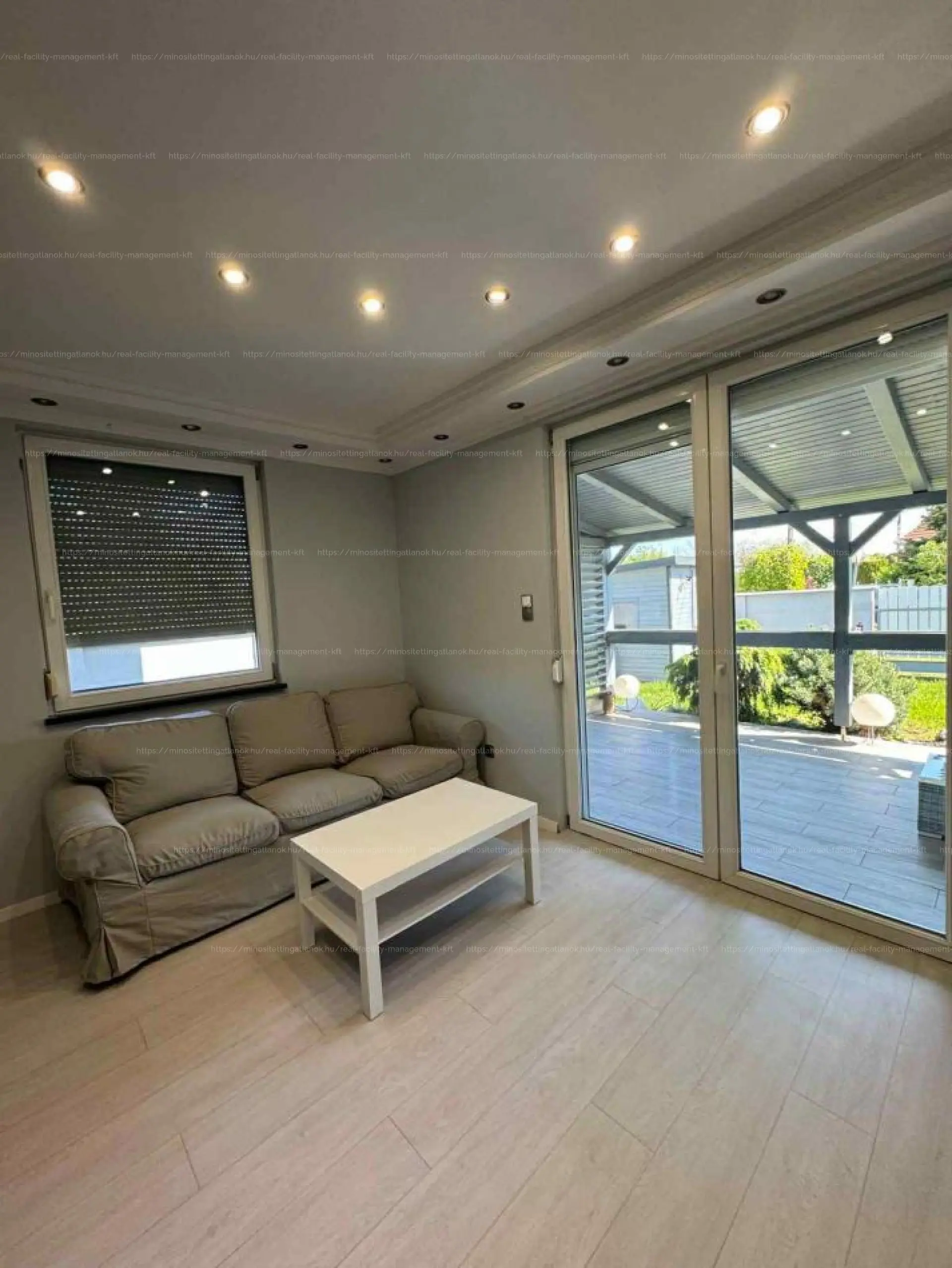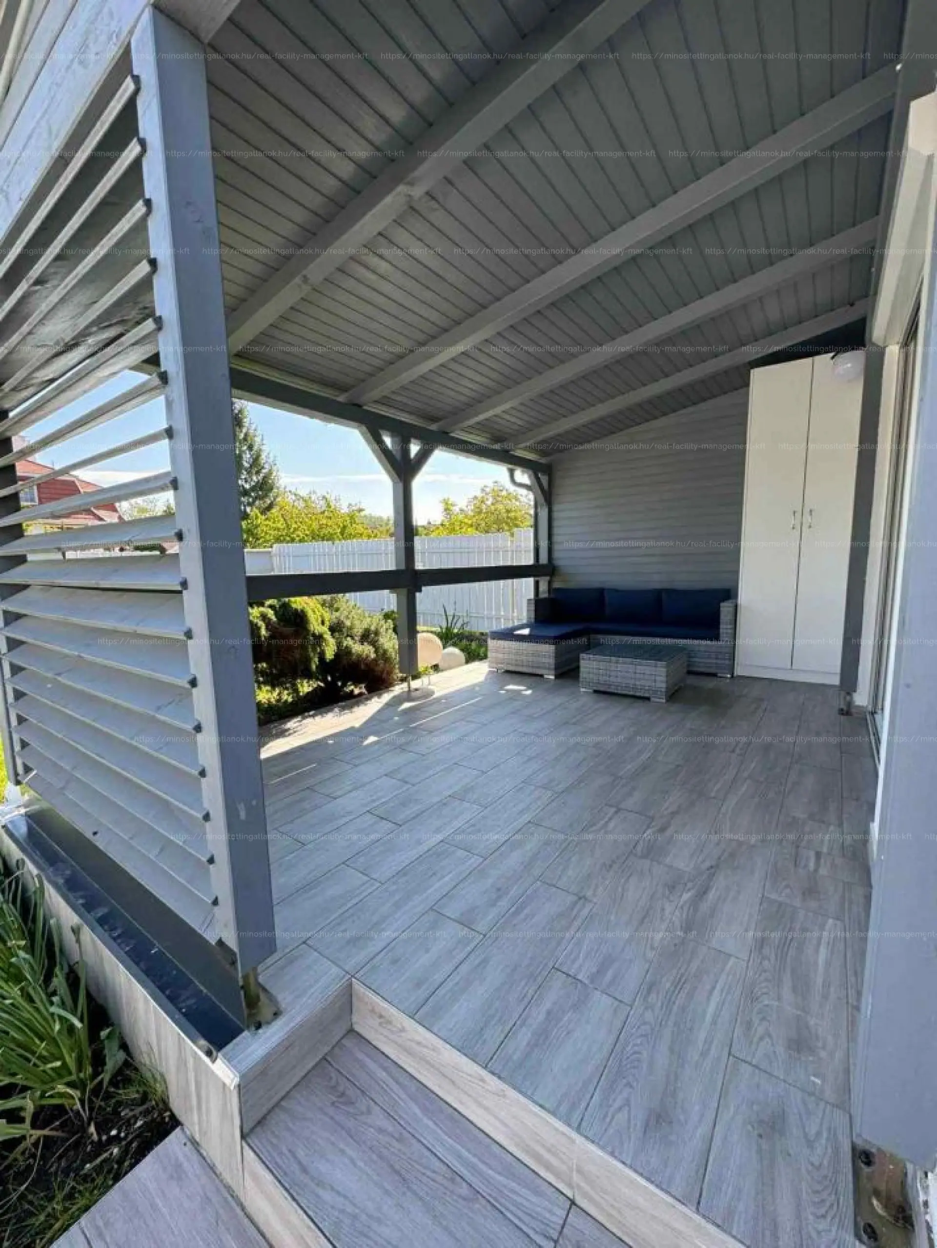 A fedett, burkolt terasz közvetlen kapcsolatot teremt a gondozott, intim kerttel, amely ideális pihenésre, családi vagy baráti összejövetelekhez, de akár kisgyermekesek vagy háziállat-tartók számára is tökéletes választás.