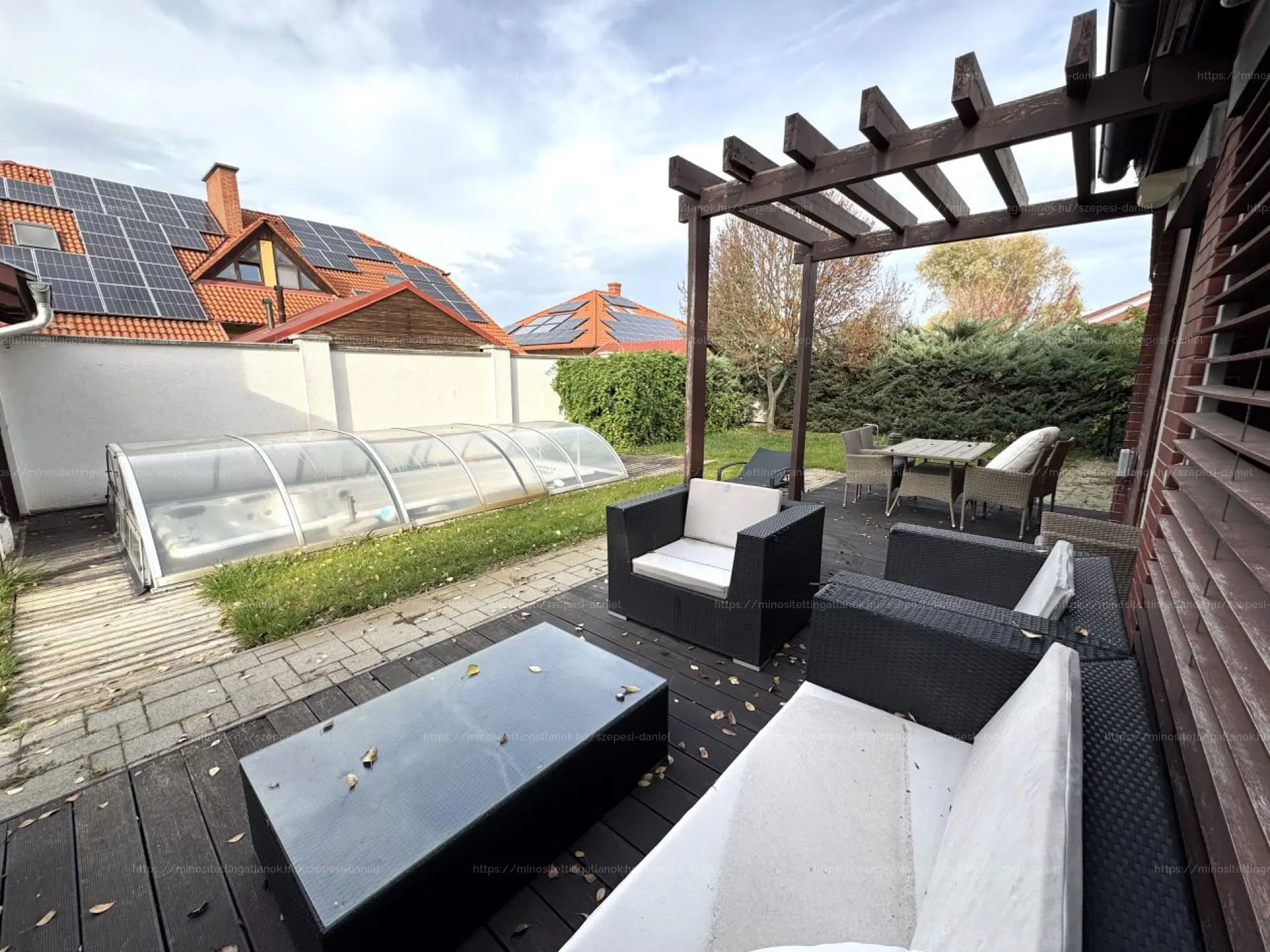 Az ingatlan csendes, kertvárosi környezetben, átmenő forgalomtól mentes zsákutcában helyezkedik el – ideális választás mindazoknak, akik nyugalomra és meghitt otthonra vágynak. A ház jól átgondolt tervek alapján épült, ennek köszönhetően praktikus elrendezésű, nagyobb családoknak is tökéletes választás, otthonos hangulatot áraszt. A tágas, világos központi életterek valamint az élhető méretű hálószobák is kiválóan alkalmasak kényelmes mindennapokhoz. A gondozott, automata öntözőrendszerrel ellátott kert, fákkal és egy hangulatos, 20 m²-es terasszal valamint egy fedett, szabadtéri konyhával, kemencével és grill sarokkal várja az új tulajdonost – amely tökéletes helyszín a pihenésre vagy baráti/ családi összejövetelekhez.