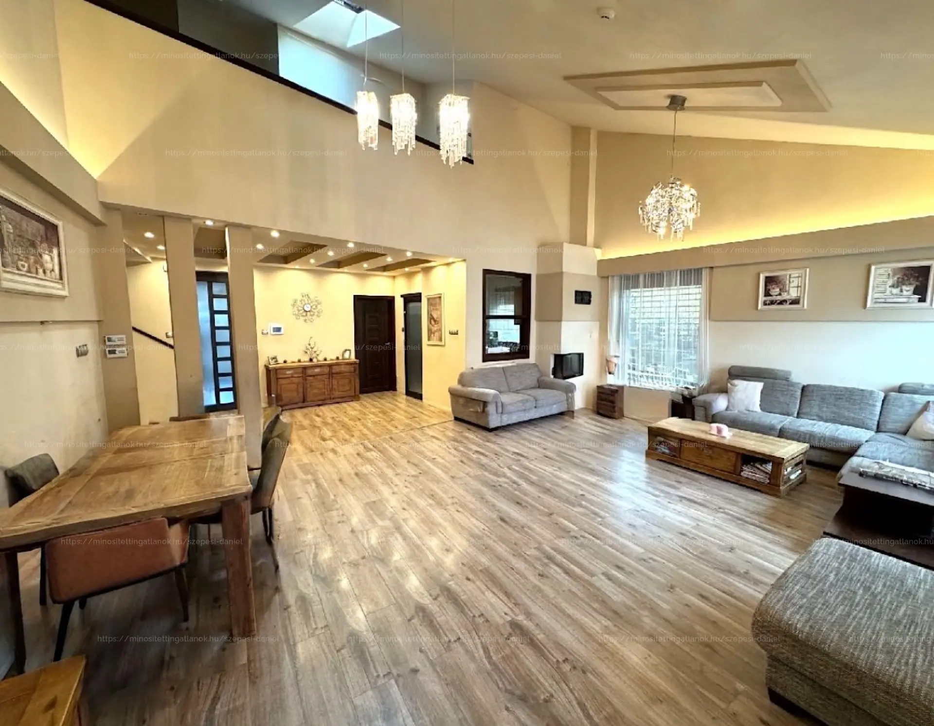 134 m² (nappali, konyha, étkező, 3 db hálószoba, 2 db fürdőszoba, toilet, 2 db gardrób, előszoba, közlekedő)