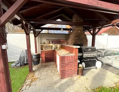 Az ingatlan csendes, kertvárosi környezetben, átmenő forgalomtól mentes zsákutcában helyezkedik el – ideális választás mindazoknak, akik nyugalomra és meghitt otthonra vágynak. A ház jól átgondolt tervek alapján épült, ennek köszönhetően praktikus elrendezésű, nagyobb családoknak is tökéletes választás, otthonos hangulatot áraszt. A tágas, világos központi életterek valamint az élhető méretű hálószobák is kiválóan alkalmasak kényelmes mindennapokhoz. A gondozott, automata öntözőrendszerrel ellátott kert, fákkal és egy hangulatos, 20 m²-es terasszal valamint egy fedett, szabadtéri konyhával, kemencével és grill sarokkal várja az új tulajdonost – amely tökéletes helyszín a pihenésre vagy baráti/ családi összejövetelekhez.