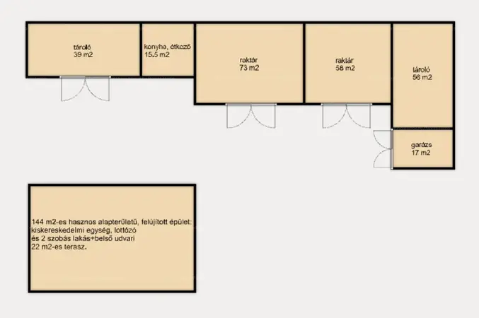 Az 1149 m2-es telekterületen elhelyezkedő, kivett üzlet, raktár megnevezésű ingatlan, k.b.: 400 m2-es hasznos alapterületű épületegyüttessel rendelkezik: 2023-2024-ben teljes körűen felújított kiskereskedelmi egység lottózóval, 2 szobás felújított lakás, raktárak, garázs stb. Főút melletti elhelyezkedés, jó parkolási lehetőségek, nagymértékben felújított, sokoldalúan hasznosítható épületek.