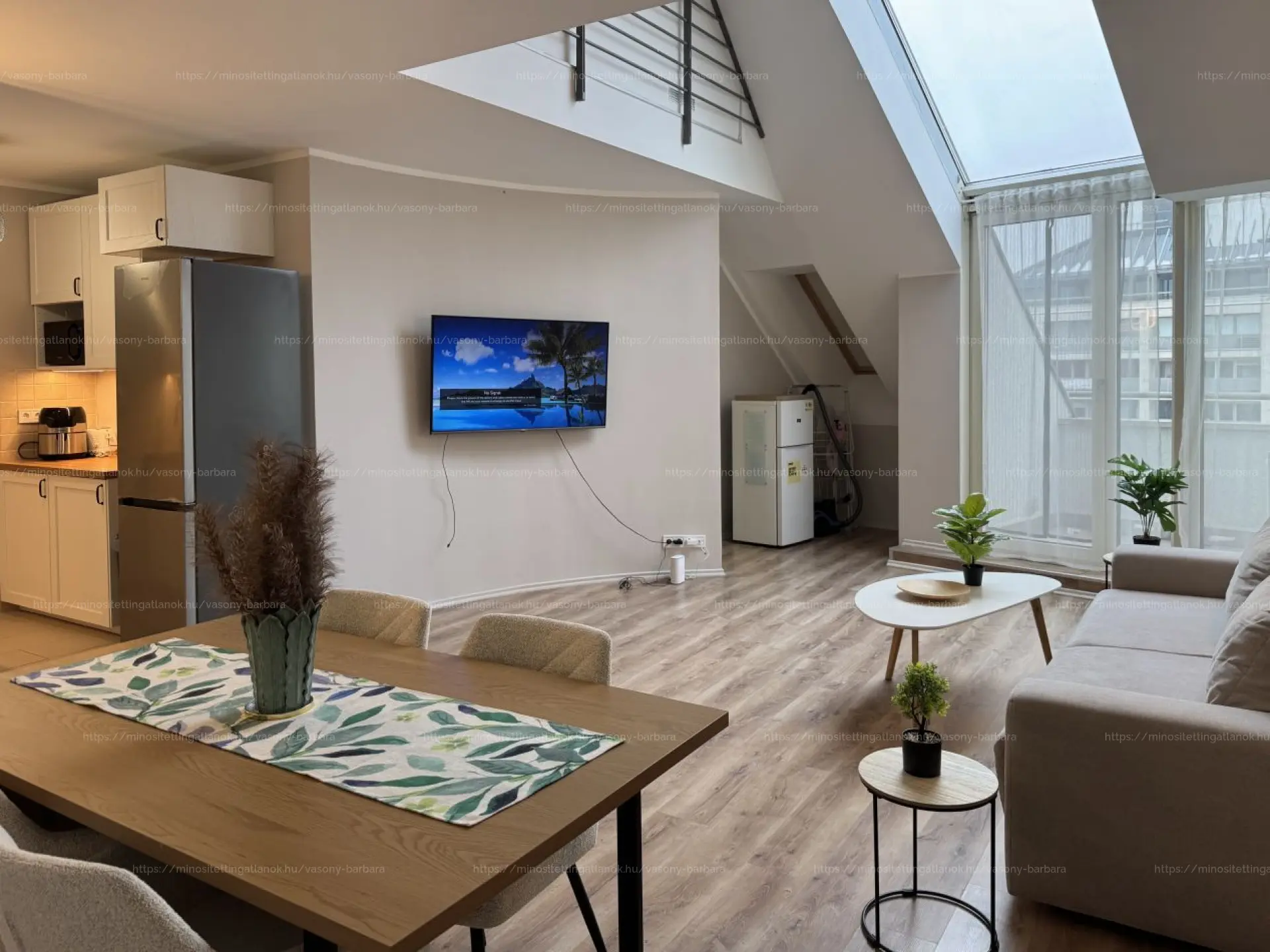 ⭐ Átgondolt elrendezés: lent egy tágas közös élettér, és egy háló / dolgozó vagy vendégszobaként is funkcionáló szoba, fent pedig 2 jól elkülönülő, nagyméretű hálószoba található— ideális választás családoknak, pároknak vagy otthonról dolgozóknak.