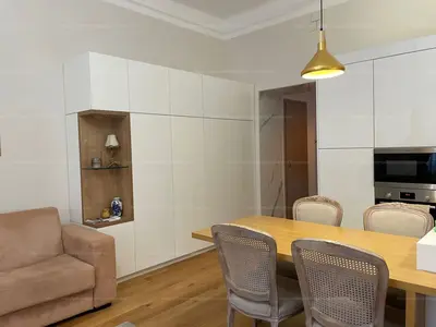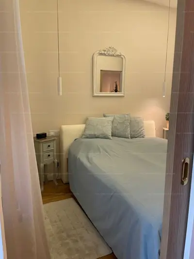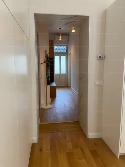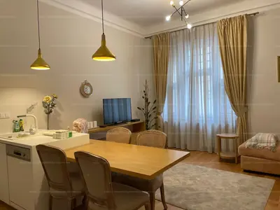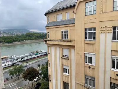 For sale: move-in ready apartment with a partial panoramic view in the Palatinus building. Unencumbered, furnished and fully equipped, 47 sqm: open-plan (American) kitchen with living room + bedroom, bathroom with shower, separate WC with hand basin, entrance hall, gas central heating (combi boiler), heating/cooling air conditioner. Well-maintained corner condominium building with 50 apartments, gallery-style corridors, elevator, 3.5 m ceiling height. Common cost (condo fee): HUF 17,920/month.