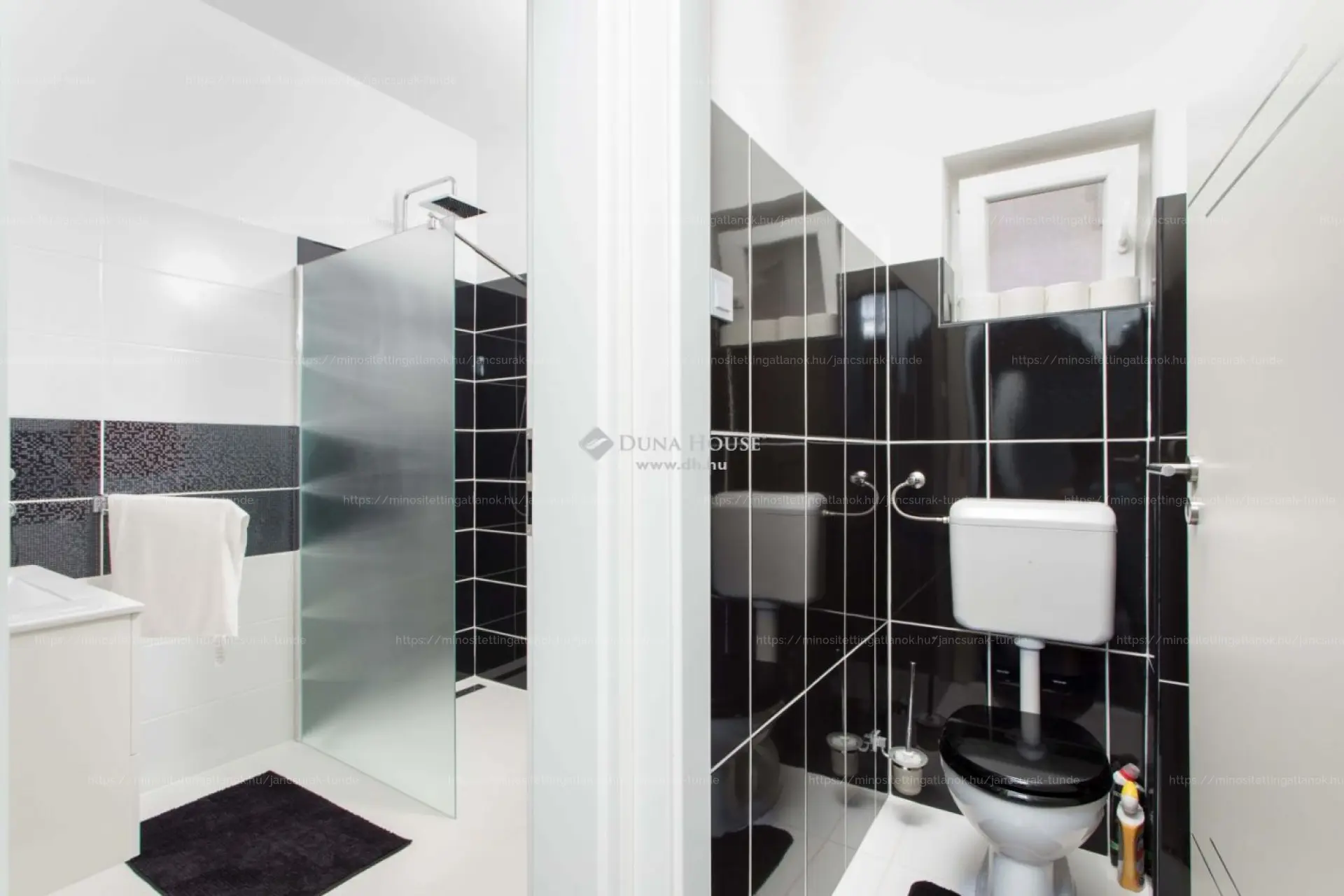- modern, dupla komfortos fürdőszoba (kád + zuhanyzó, WC)
