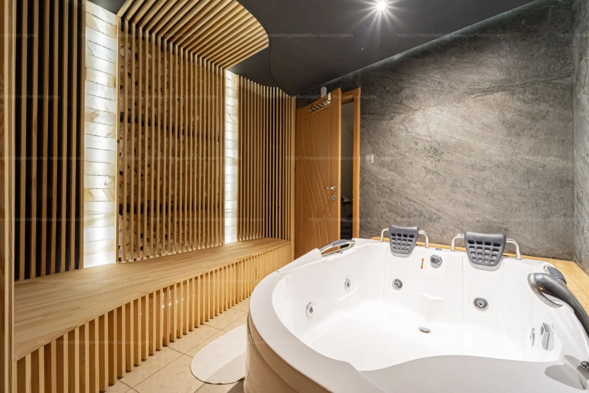 Saját wellness: szauna, jakuzzi, sófalas pihenő