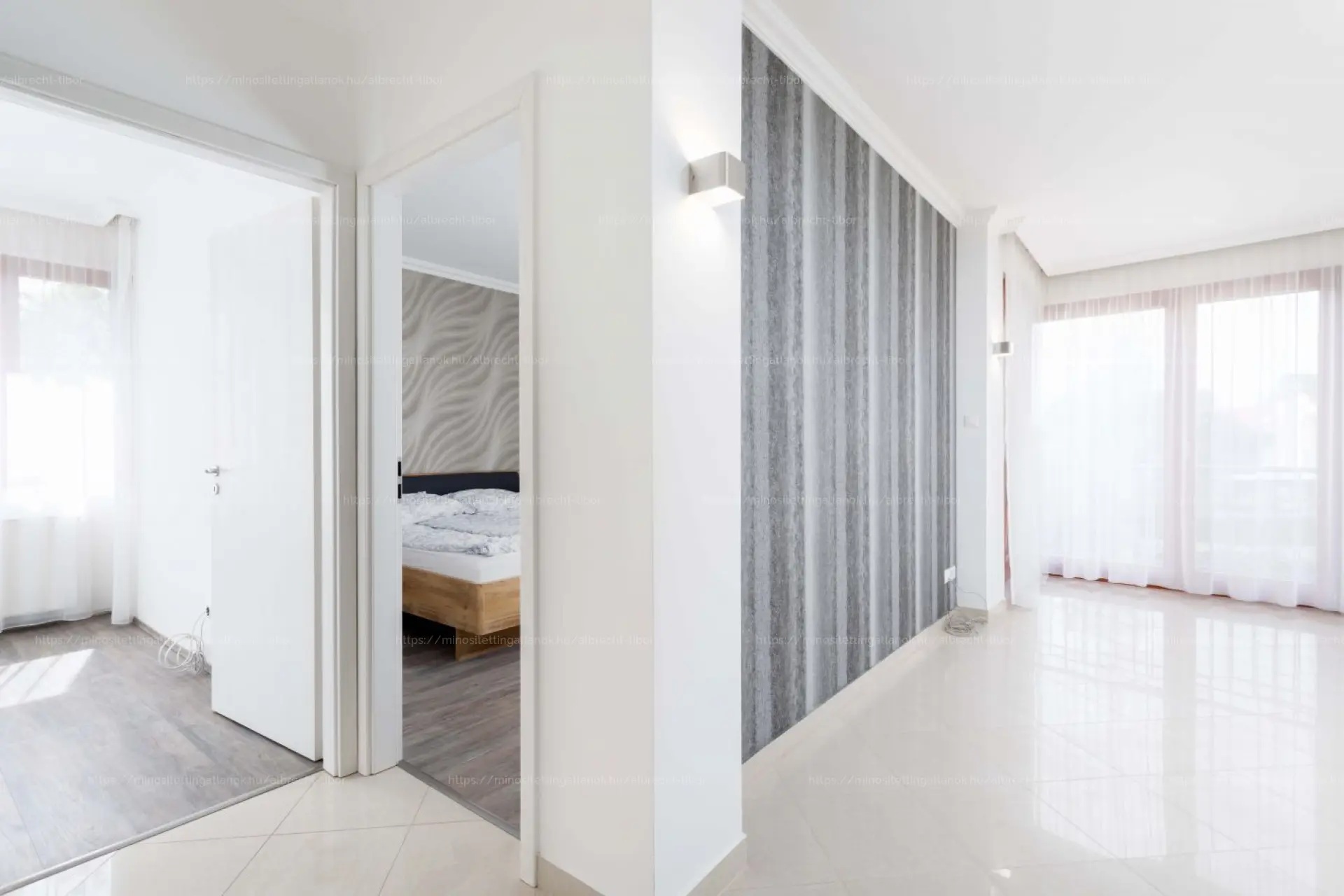 - Világos, tágas belső terek modern design, elegáns színvilág, magas minőségű burkolatok minden helyiségben