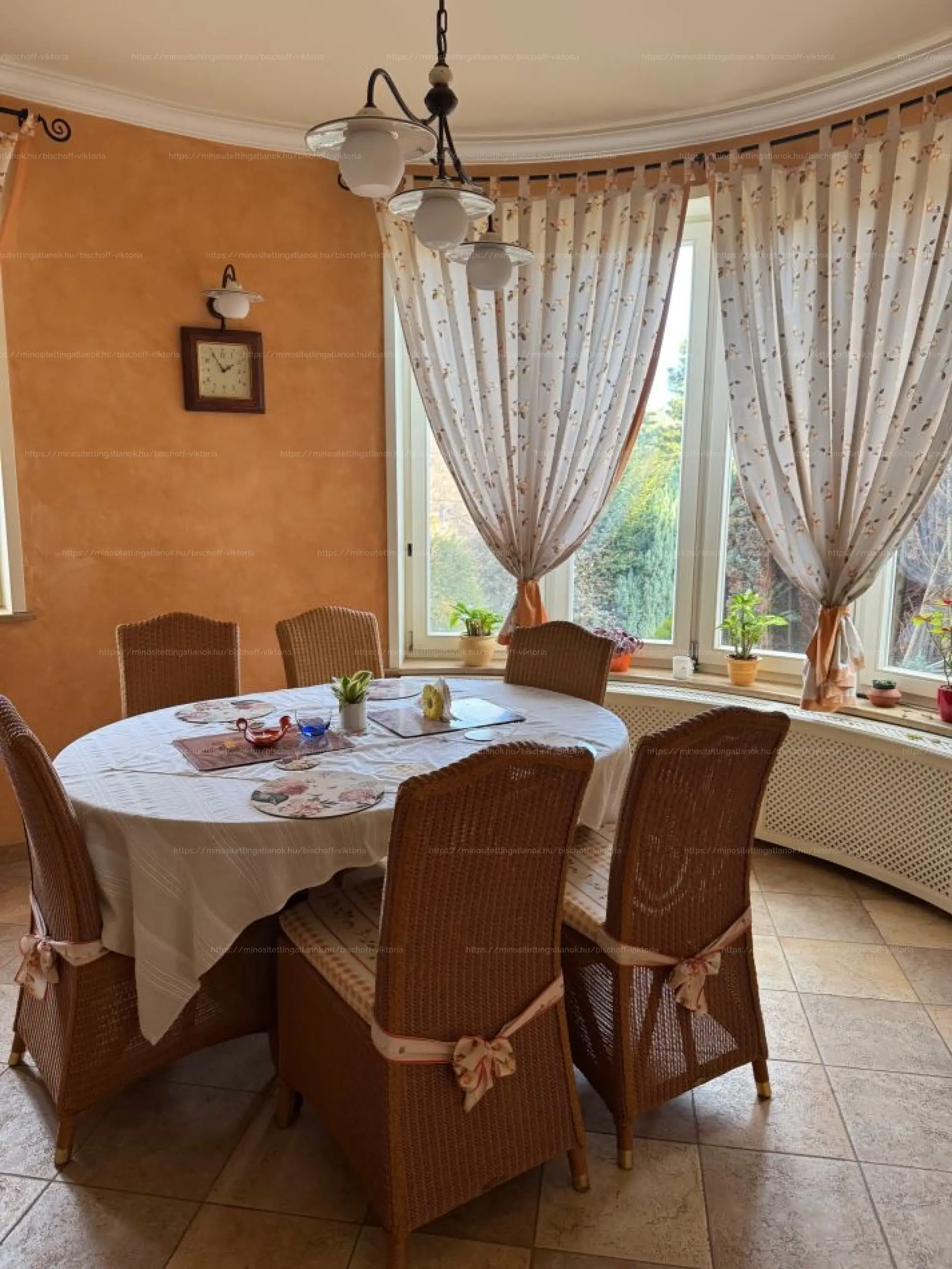 Emelet: hálószoba saját fürdőszobával, dolgozó szoba, társalgó, fürdőszoba, nagy terasz. Két fél szoba vendégeknek.